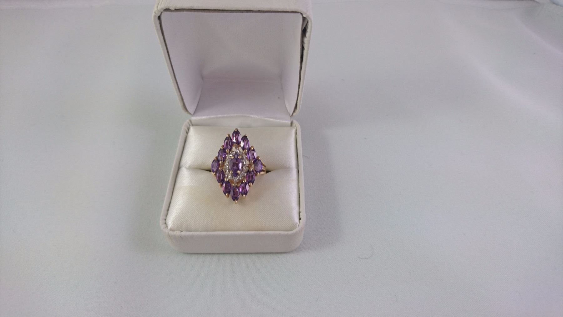 10KT YELLOW GOLD LADIES RING SET WITH 13 MARQUISE CUT STONES + 16 SCD TW 4.8 GRAM REPLACEMENT VALUE $395