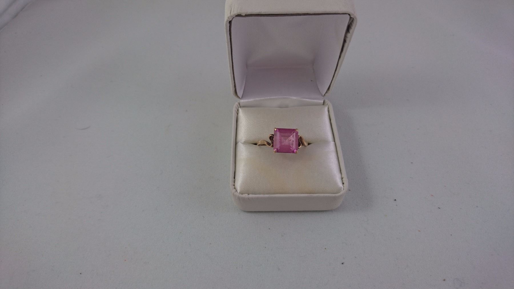 10KT YELLOW GOLD LADIES RING SET WITH SQUARE SYNTHETIC PINK STONE