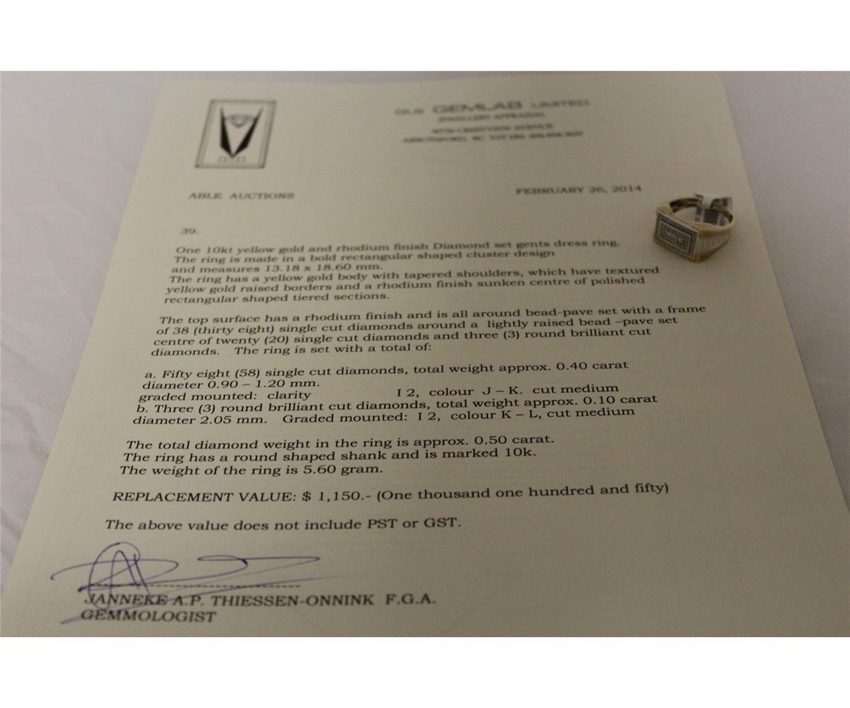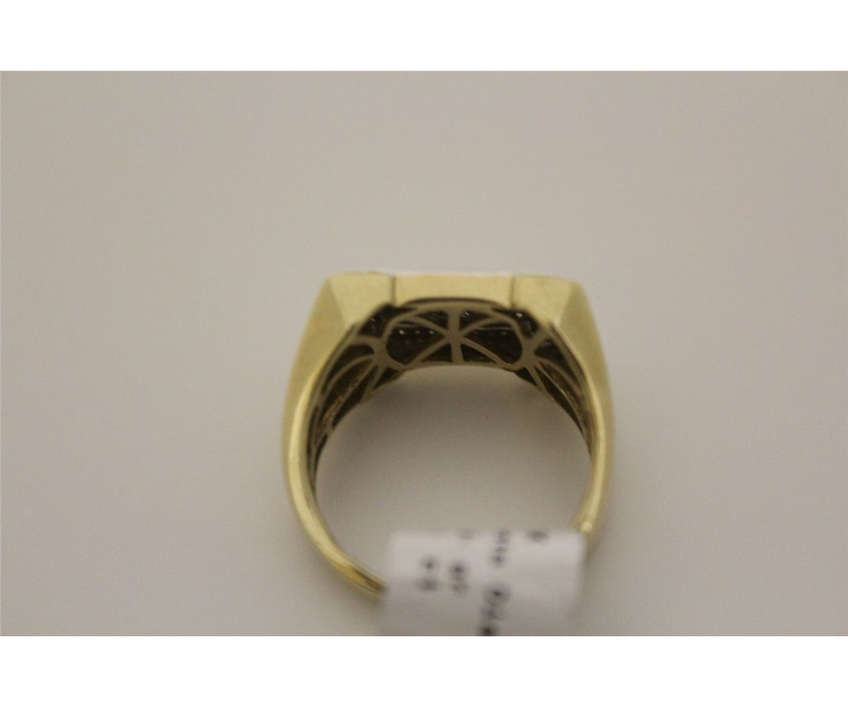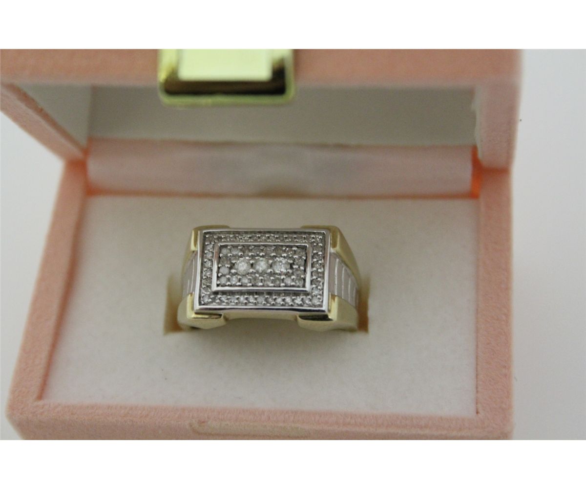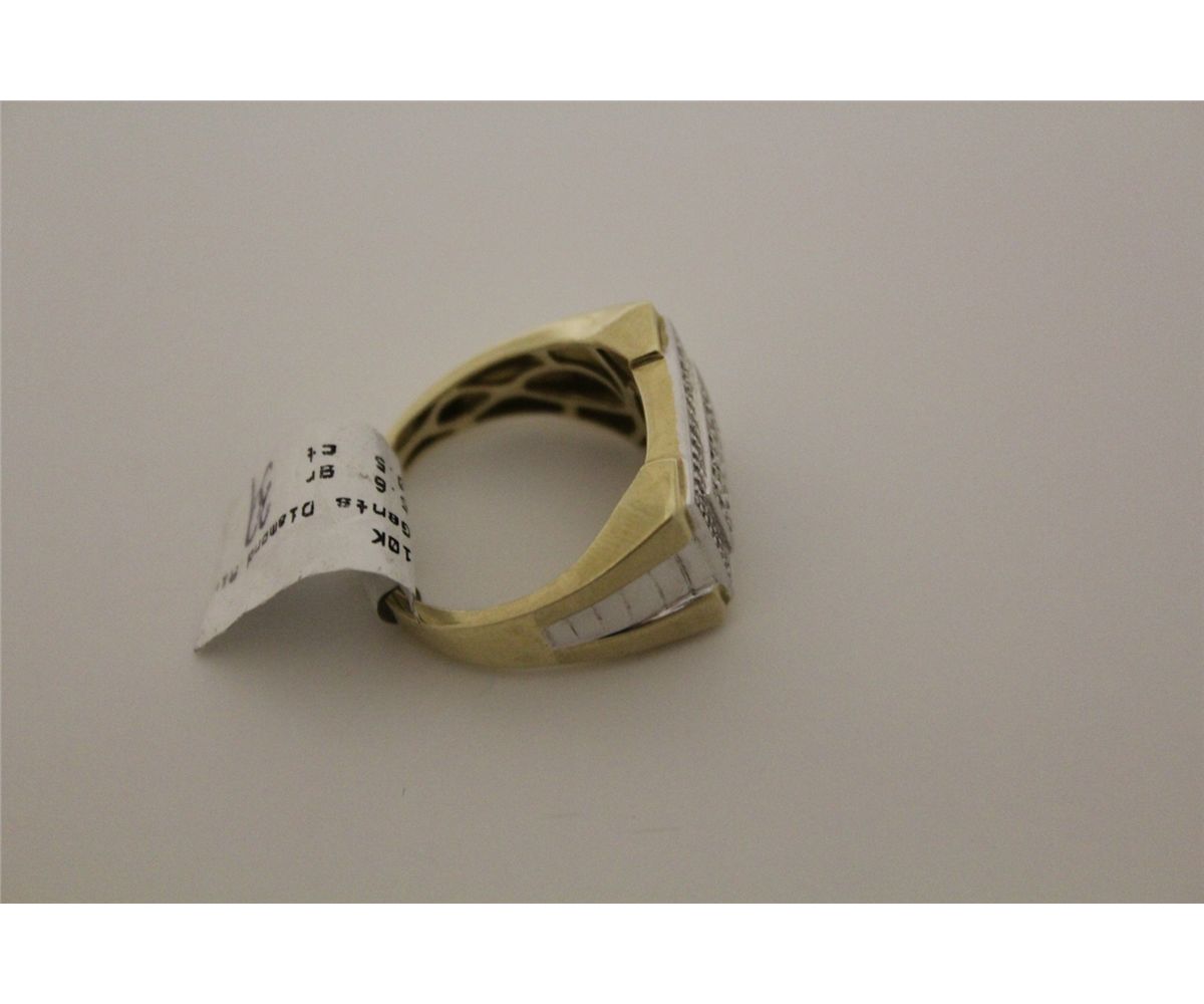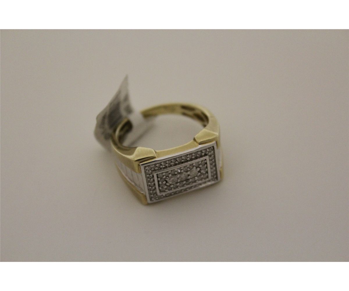 10KT. YELLOW GOLD & RHODIUM FINISH, DIAMOND SET GENTS DRESS RING. HAS AN ALL AROUND BEAD-PAVE SET WITH A TOTAL DIAMOND WEIGHT OF APPROX. 0.50 CARATS. A TOTAL OF 58 SINGLE CUT DIAMONDS. REPLACEMENT VALUE $1150.00