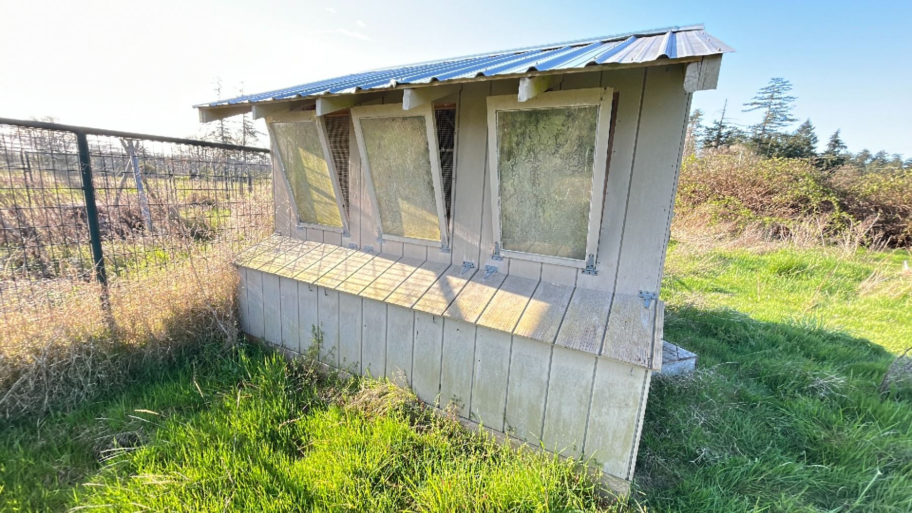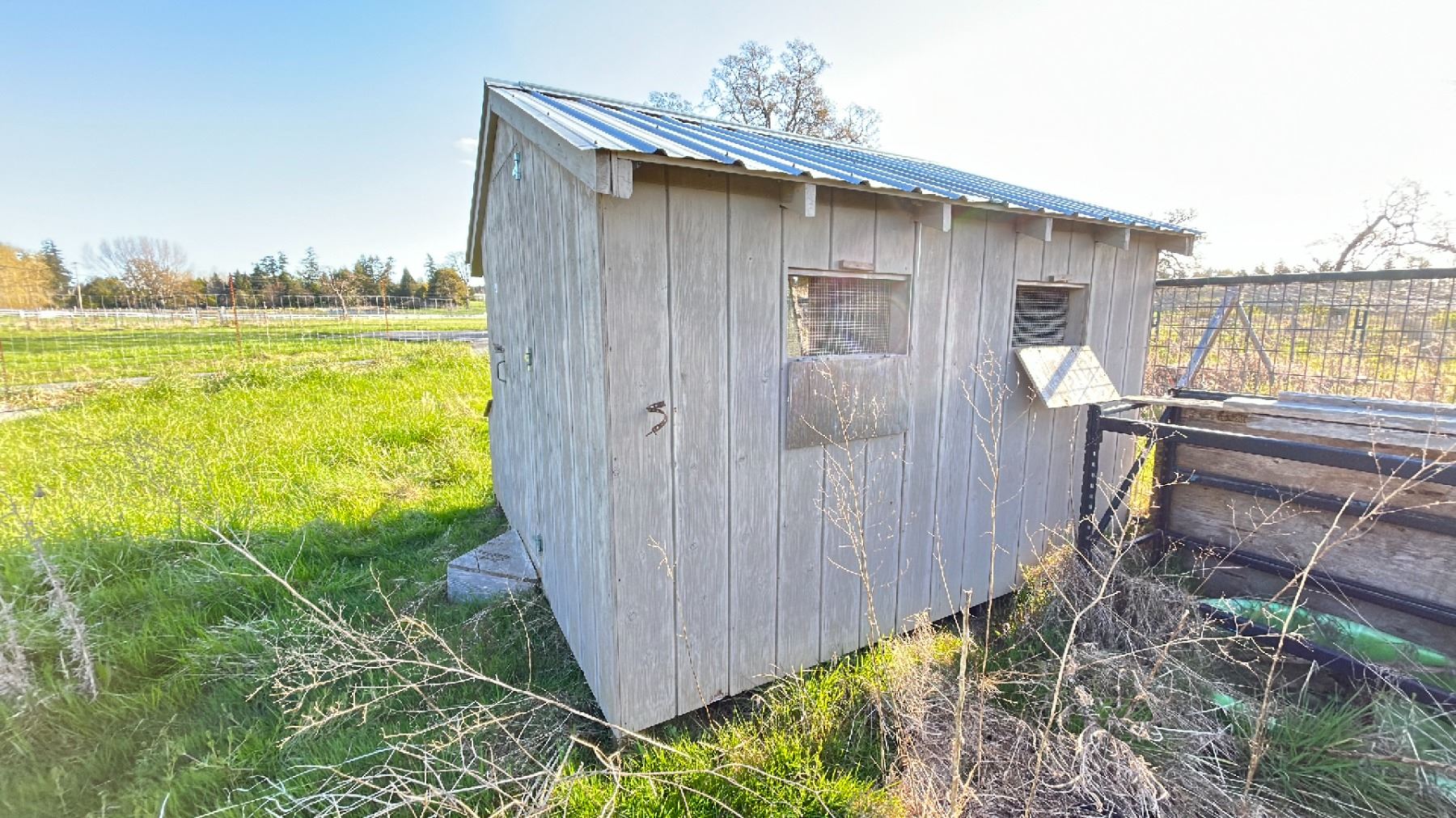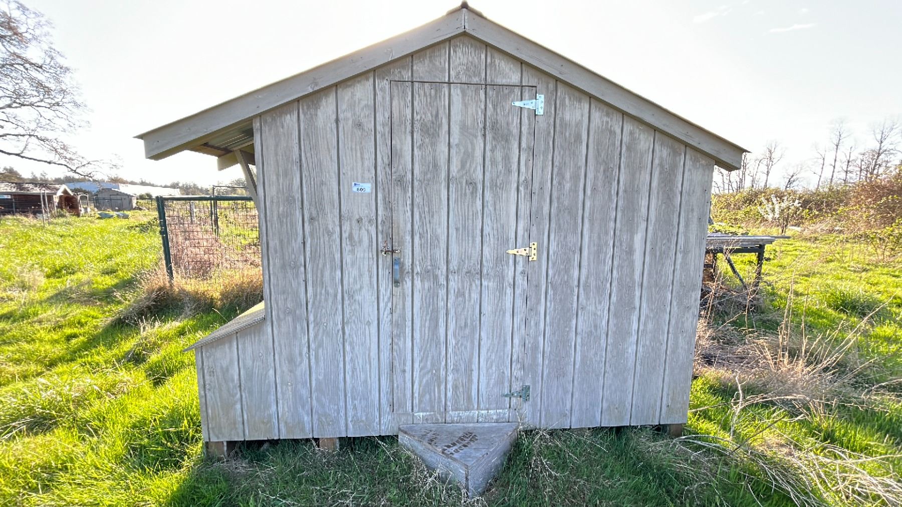 10X10' CHICKEN COOP WITH CONTENTS. SPRINKLERS, TOOLS, ETC
