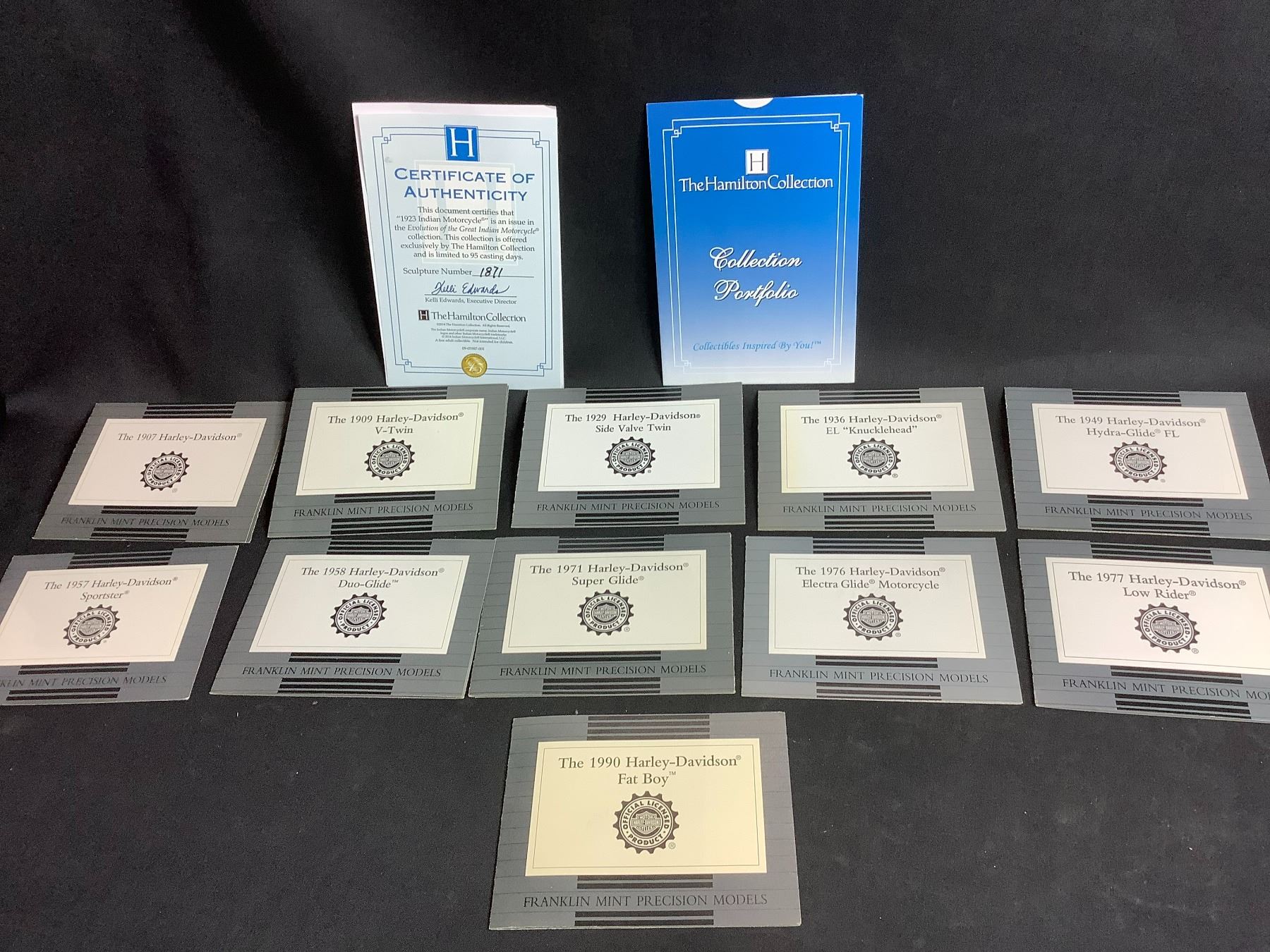 11 ASSORTED FRANKLIN MINT 1"24 SCALE MOTORCYCLES WITH COA'S