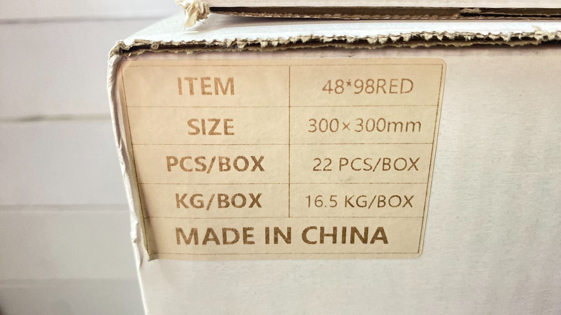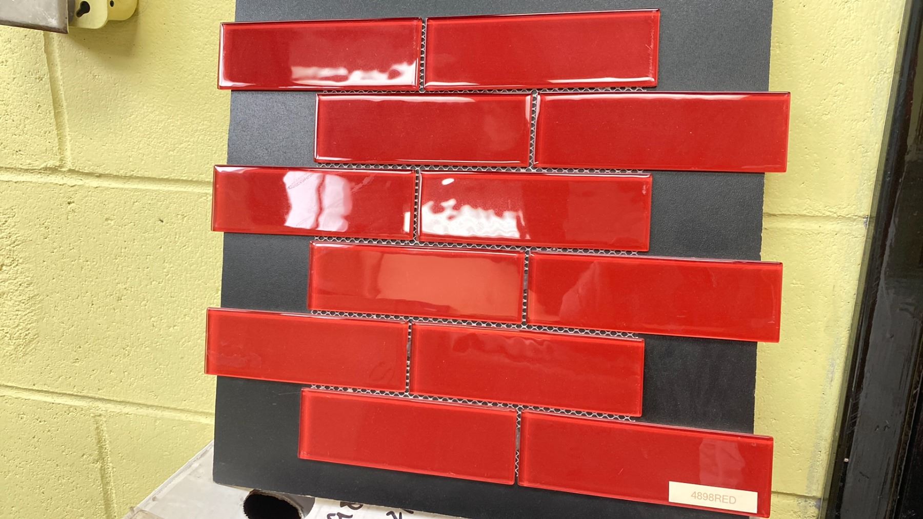 11 BOXES OF GLASS MOSAIC TILE IN 4898RED 22 X 1SQ.FT. SHEETS PER BOX APPROX 242SQ.FT. TOTAL