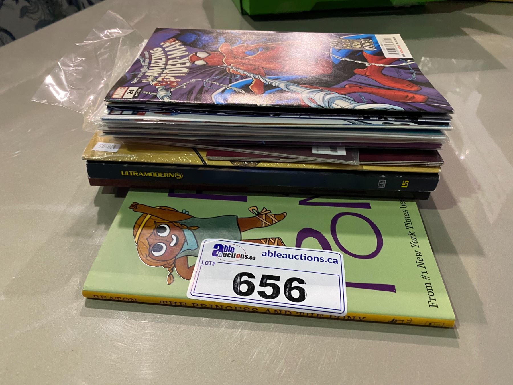 11 NEW COMIC BOOKS (SPIDERMAN, VENOM, & MORE), 2 ROLE PLAYING GAME BOOKS, 2 CANUCKS MEDALLION