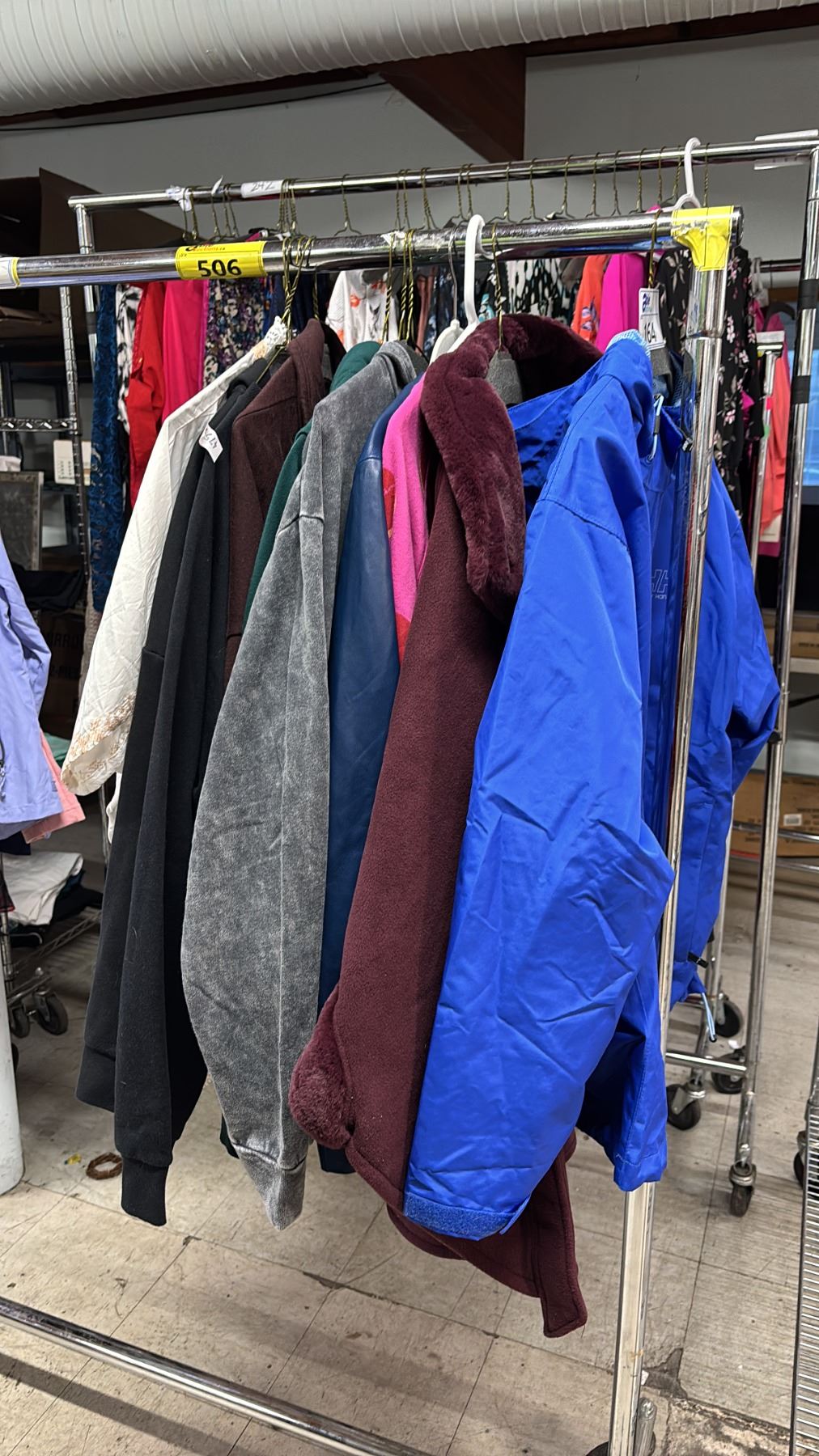 (11) PIECES ASSORTED CLOTHING INCLUDING; HELLY HANSEN JACKET SIZE XL, ADIDAS SWEATERS, ELVISSA