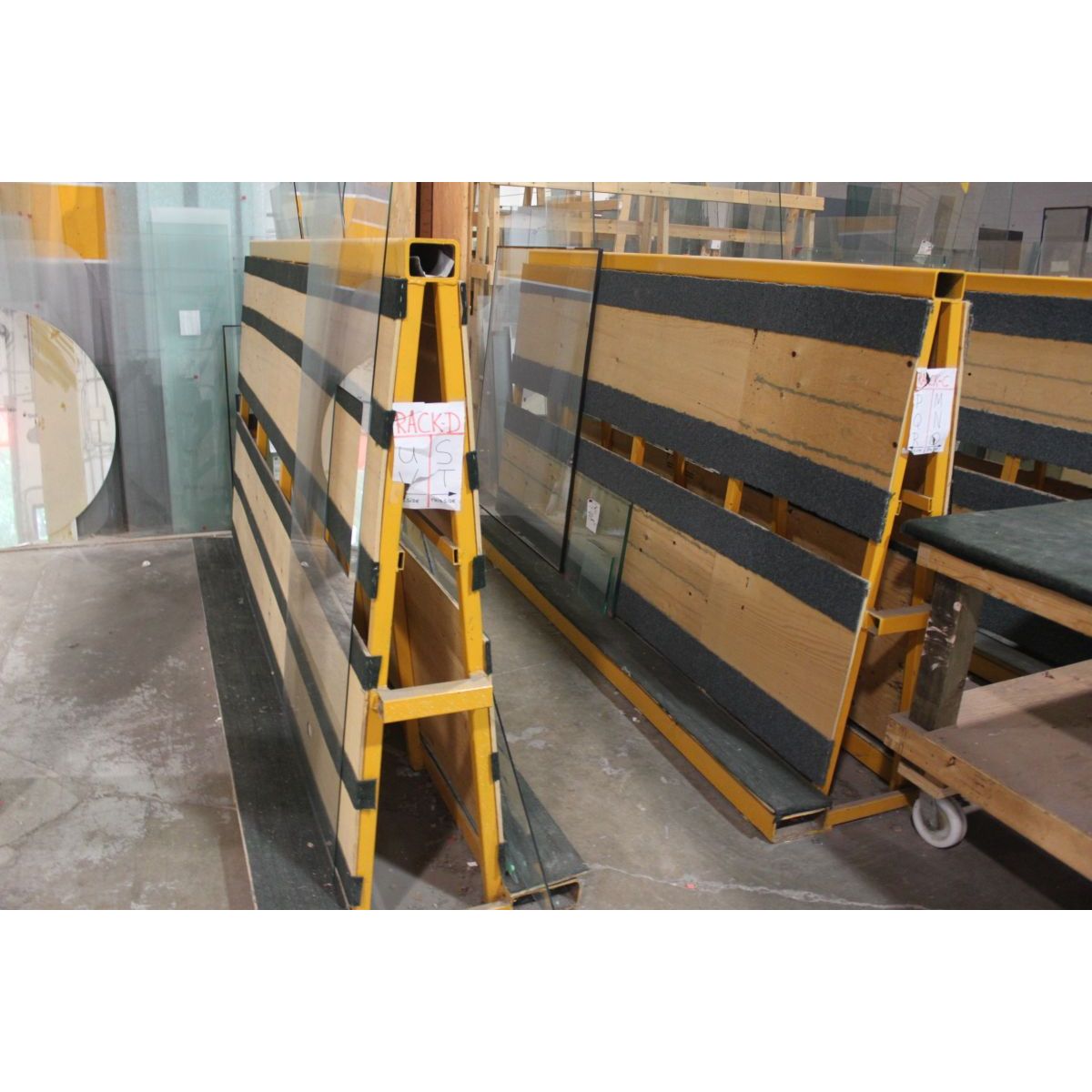 110" LONG X 60" TALL DOUBLE SIDED YELLOW METAL FRAME STOCK RACK