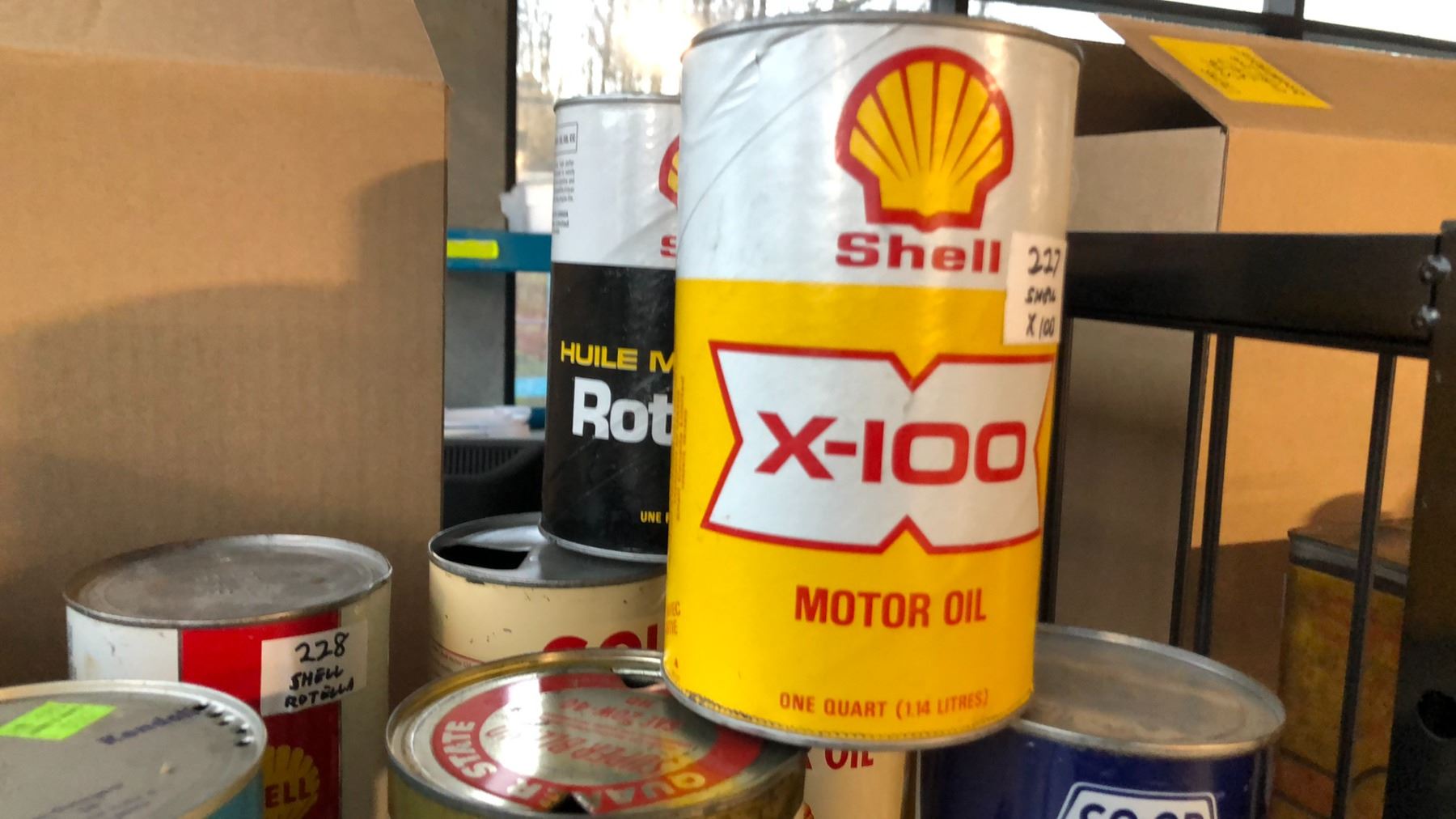 12 ASSORTED 1.14 LITRE EMPTY MOTOR OIL CANS INCL UFA, SHELL, CO-OP, QUAKER STATE, IH AND KENDALL