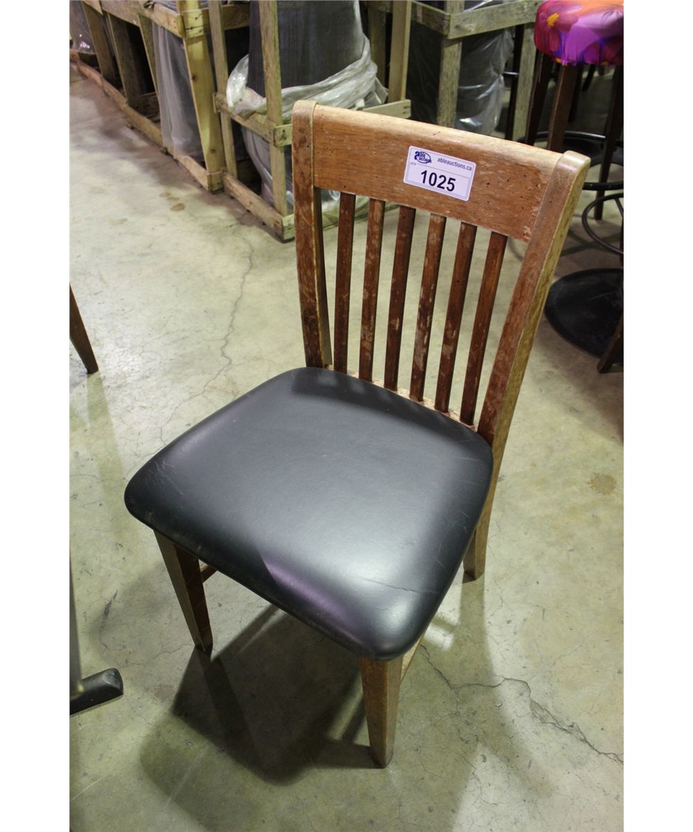 12 BLACK LEATHER WOOD FRAME RESTAURANT CHAIRS
