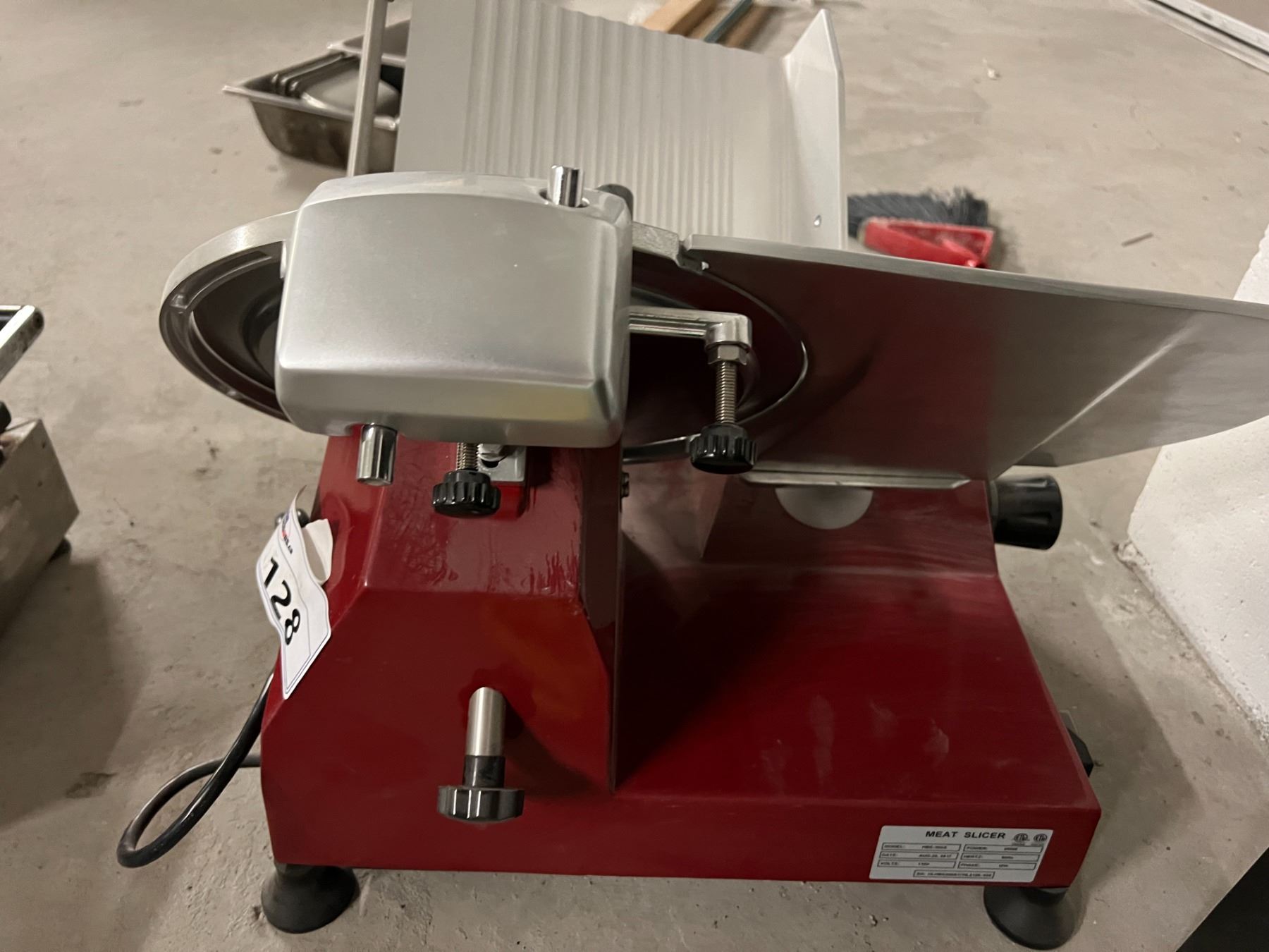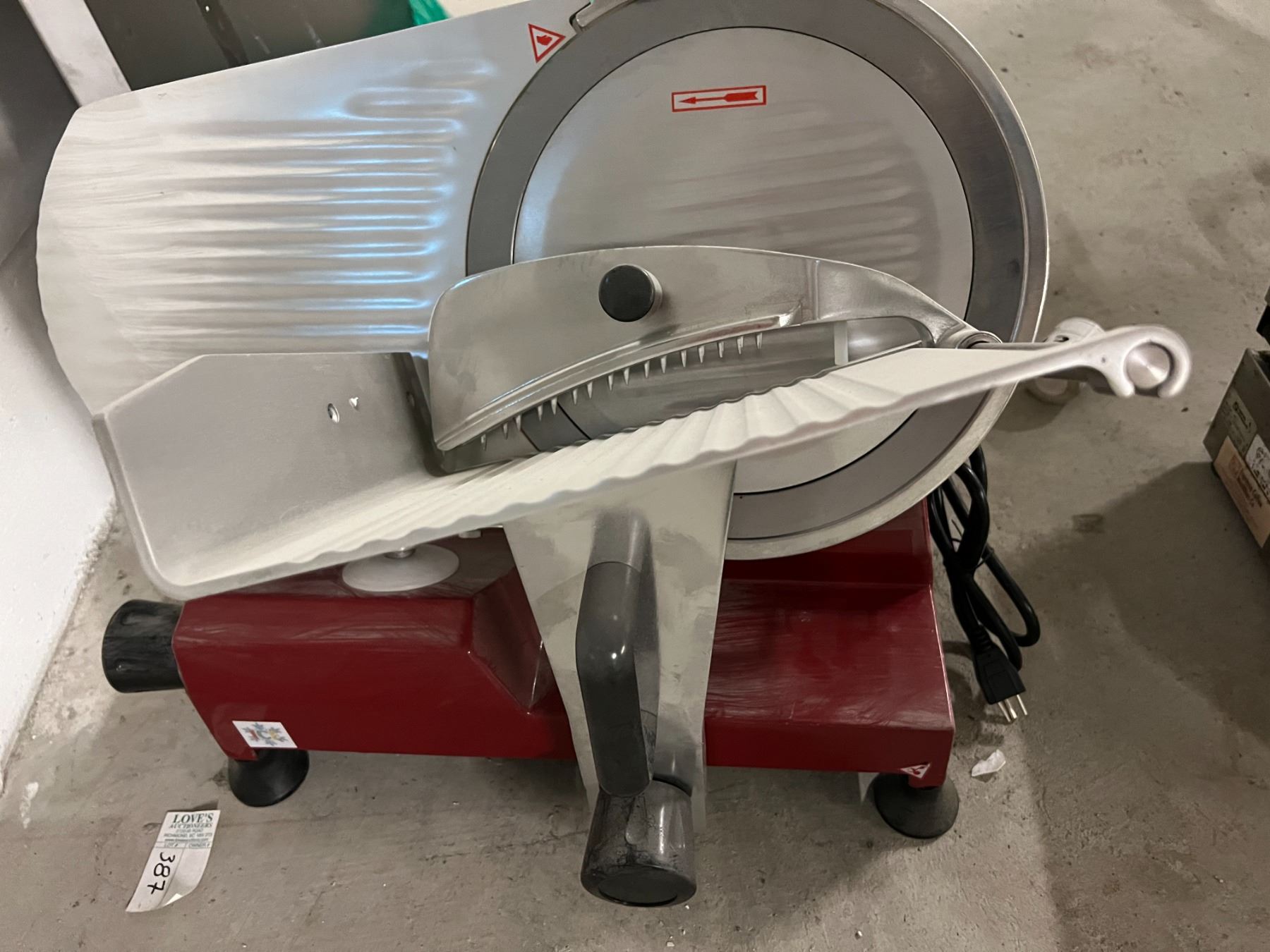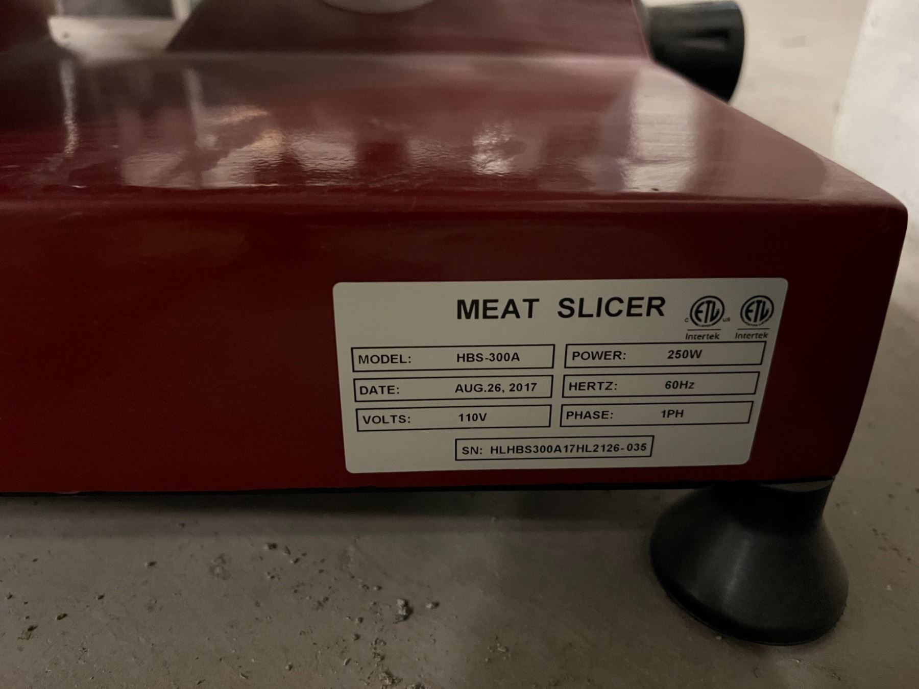 12" COMMERCIAL MEAT SLICER MODEL HBS-300A. HAS BUILT IN SHARPENING STONE