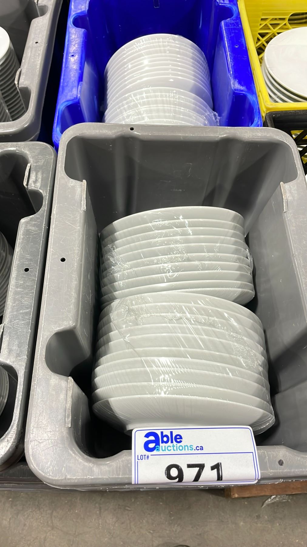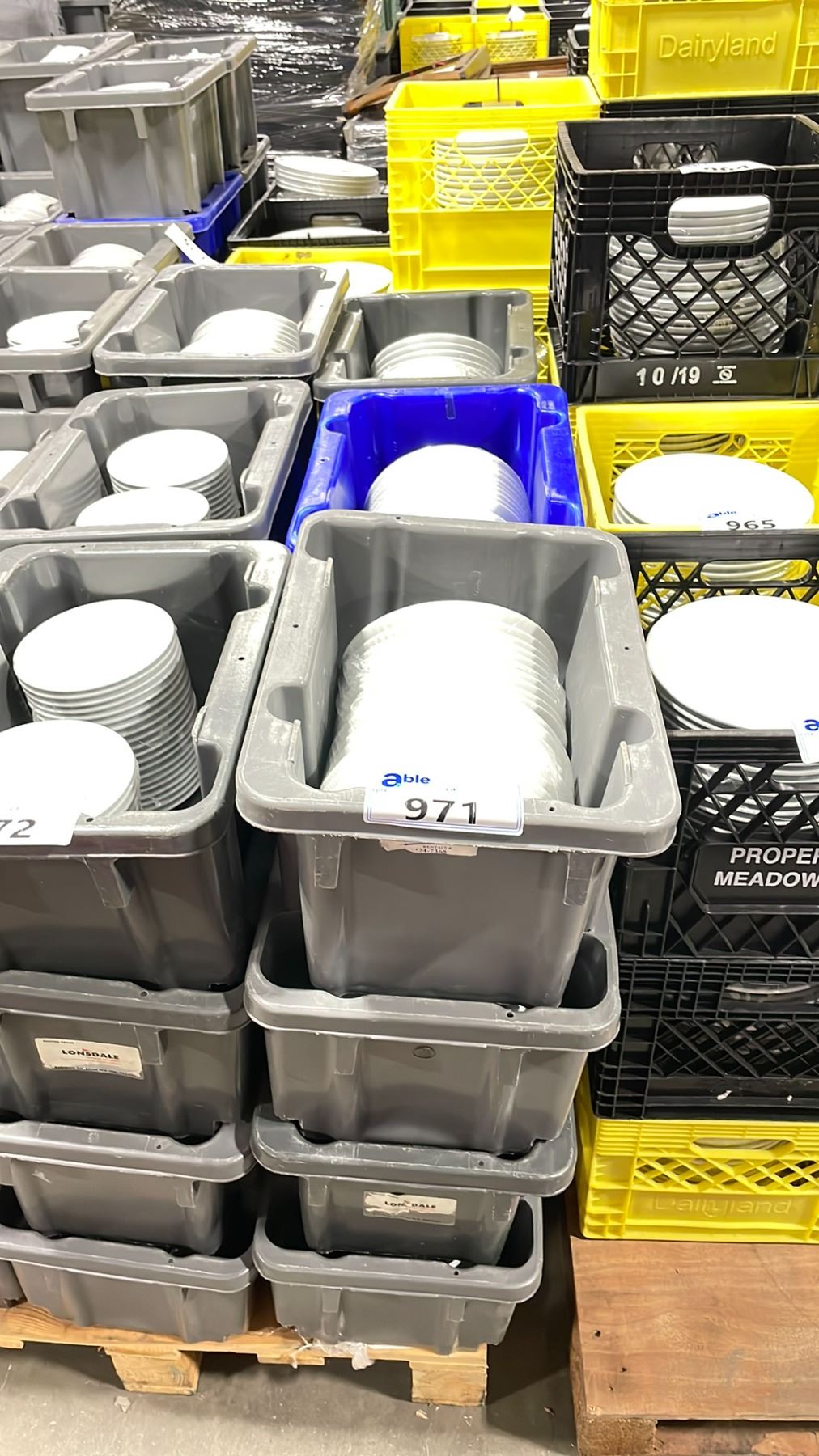 12 PLASTIC CRATES OF WHITE COMMERCIAL RESTAURANT SIDE PLATES / SAUCERS *PLASTIC CRATES INCLUDED* ( APPROX. 20 PLATES PER CRATE )