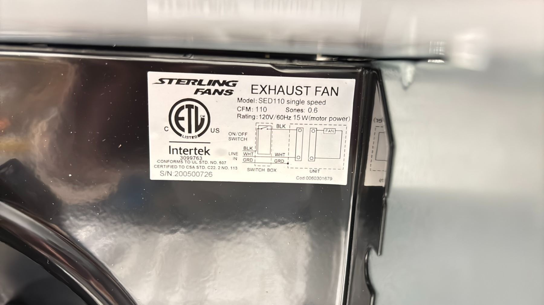 12 - STERLING FANS SED110M-4 EXHAUST FOR BATHROOM UP TO 105 SQ FT WITH A 6" DUCT