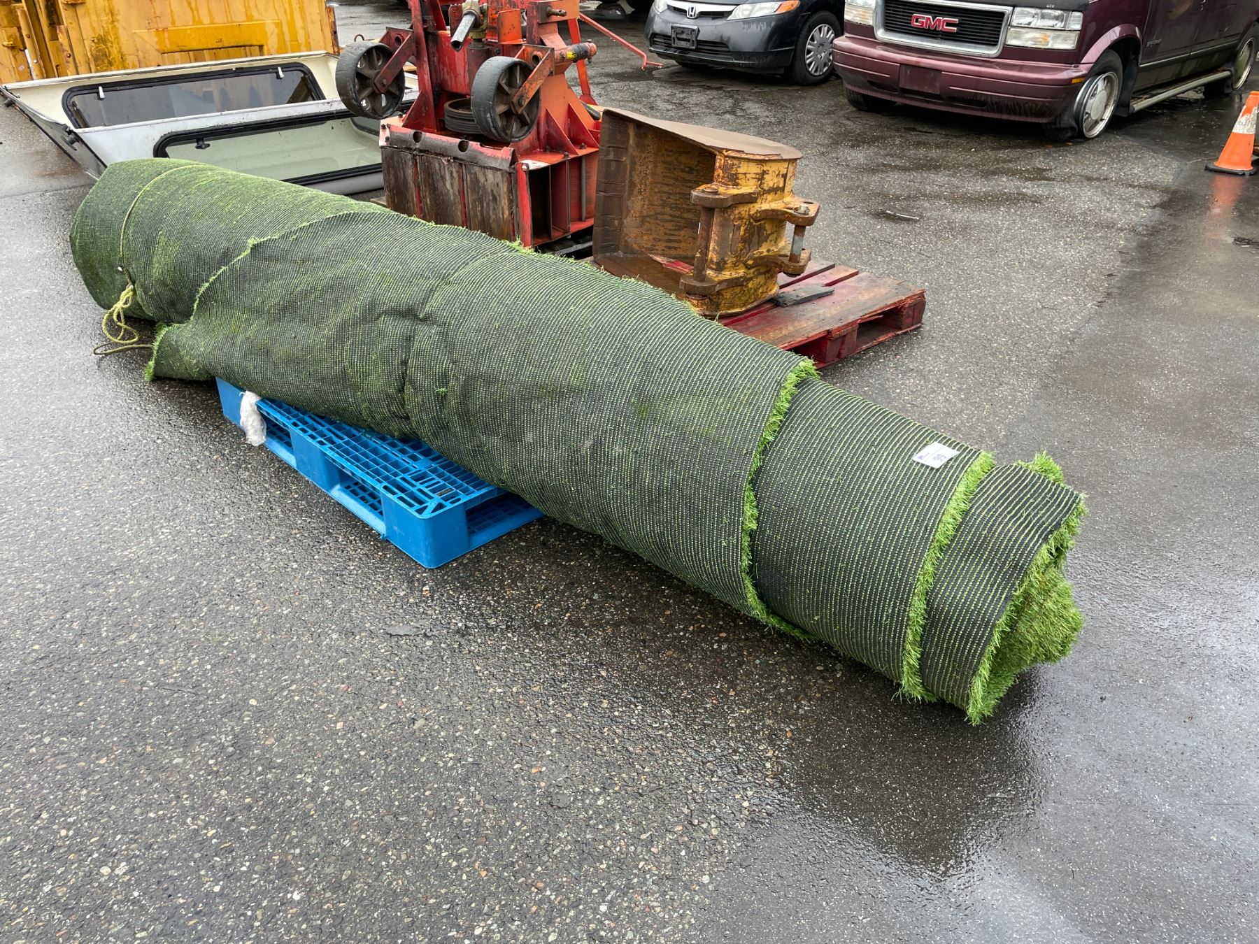 12' WIDE ROLL OF INDUSTRIAL OUTDOOR GREEN ASTROTURF APPROXIMATELY 550 SQ FT