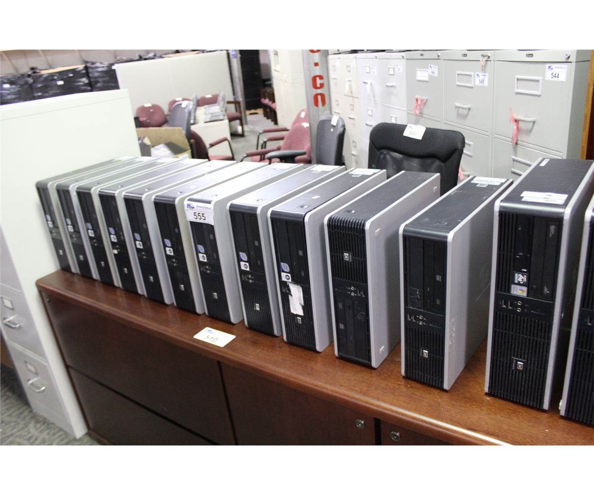 13 - HP DUO CORE DESK TOP COMPUTERS ( NO HARD DRIVES OR POWER SUPPLIES )