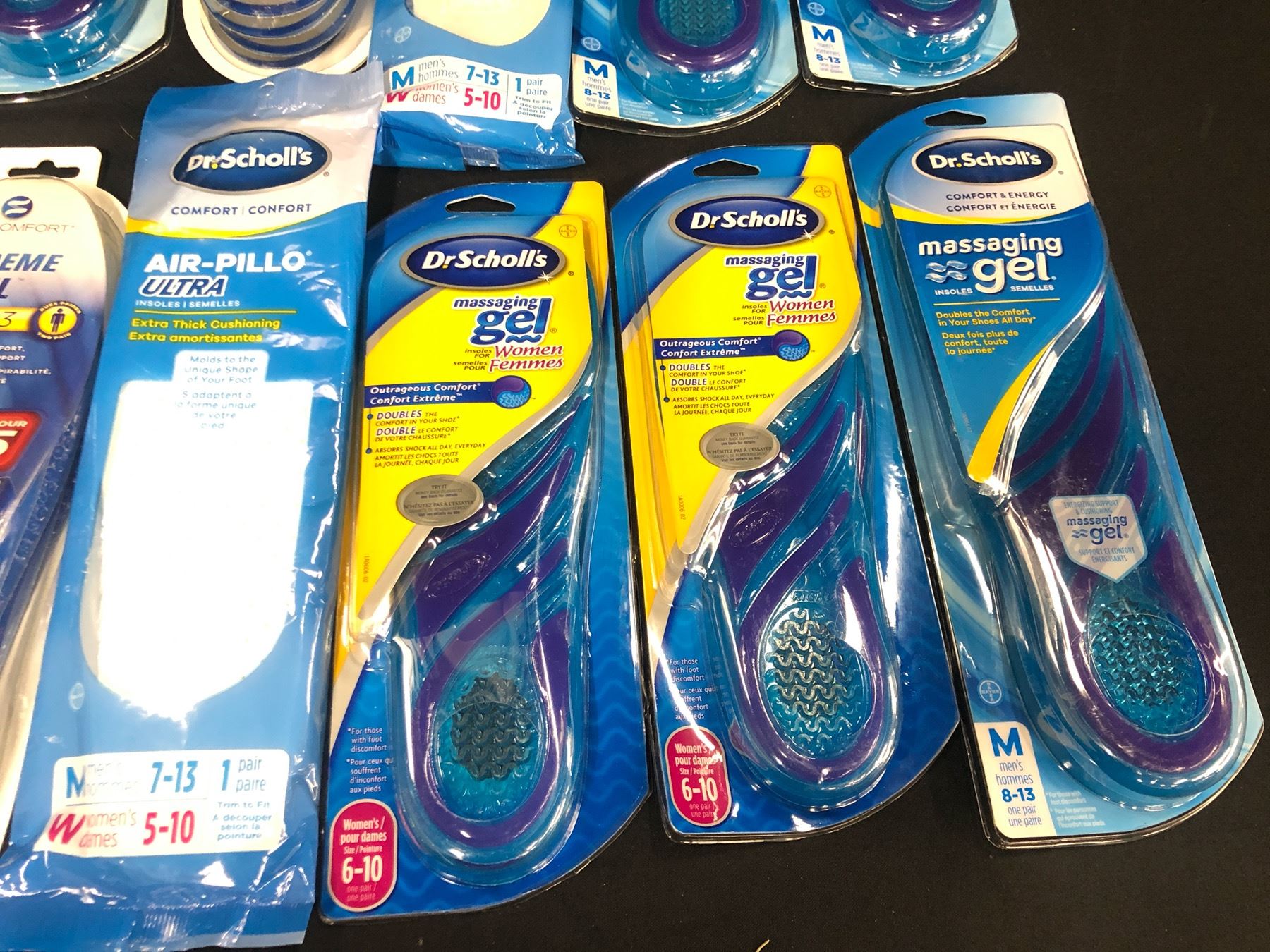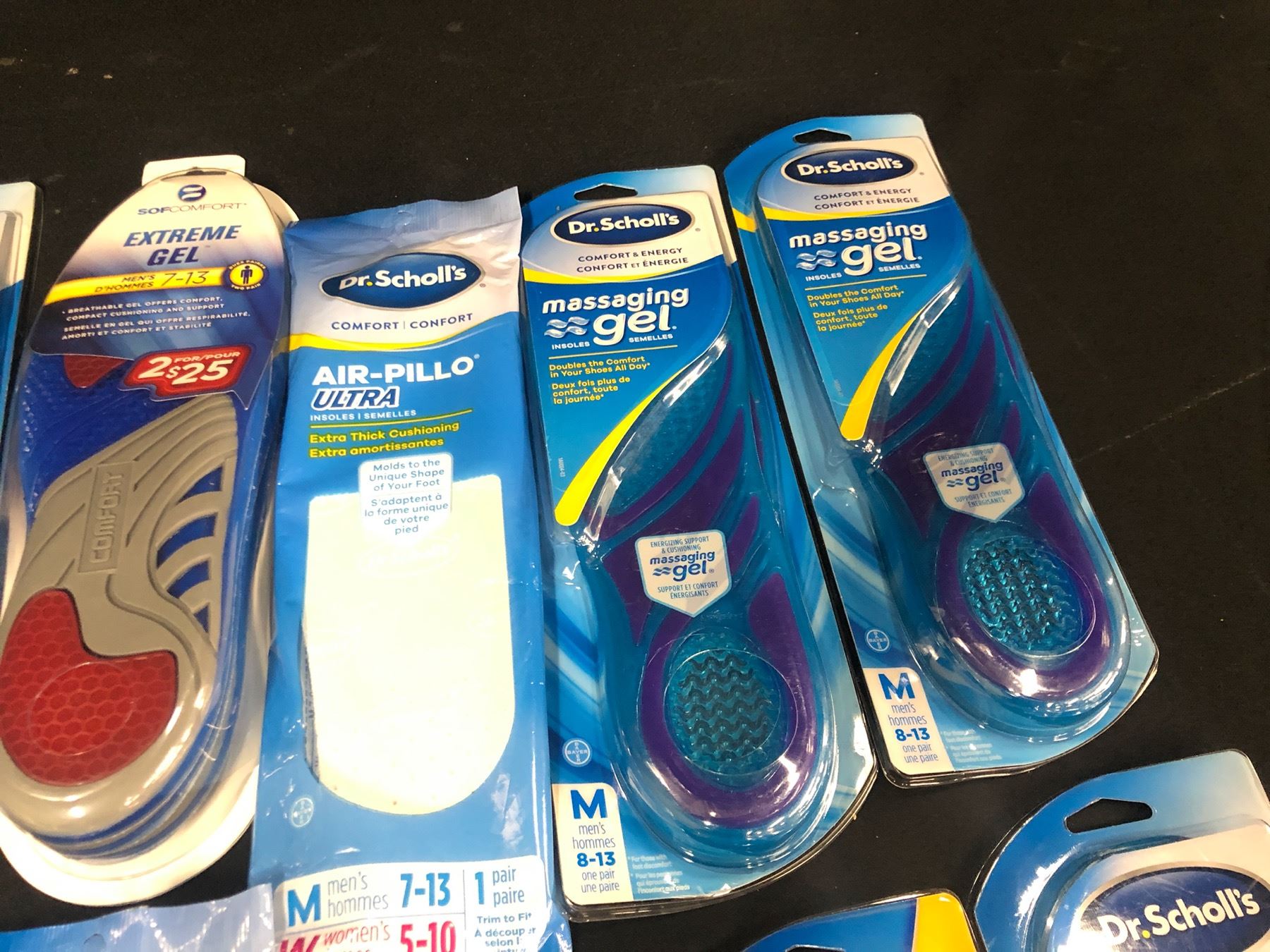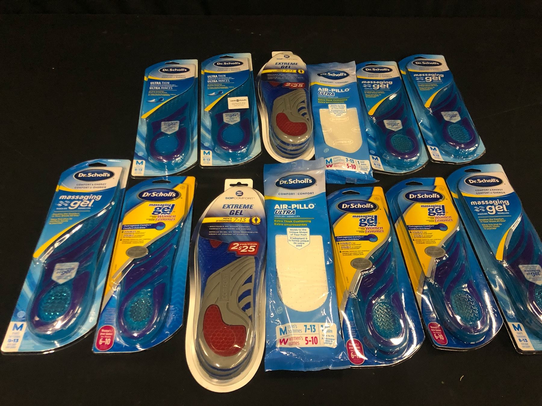 13 PACKS OF VARIOUS SIZE AND BRAND GEL/CUSHIONING INSOLES