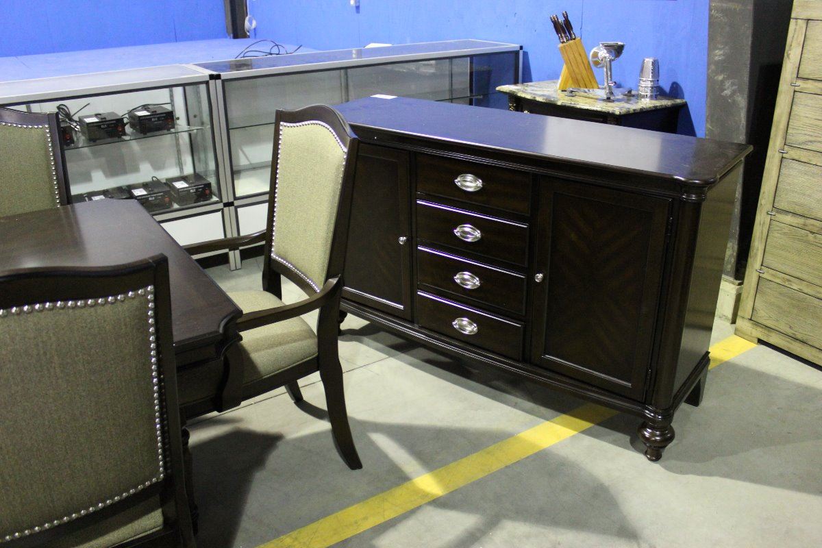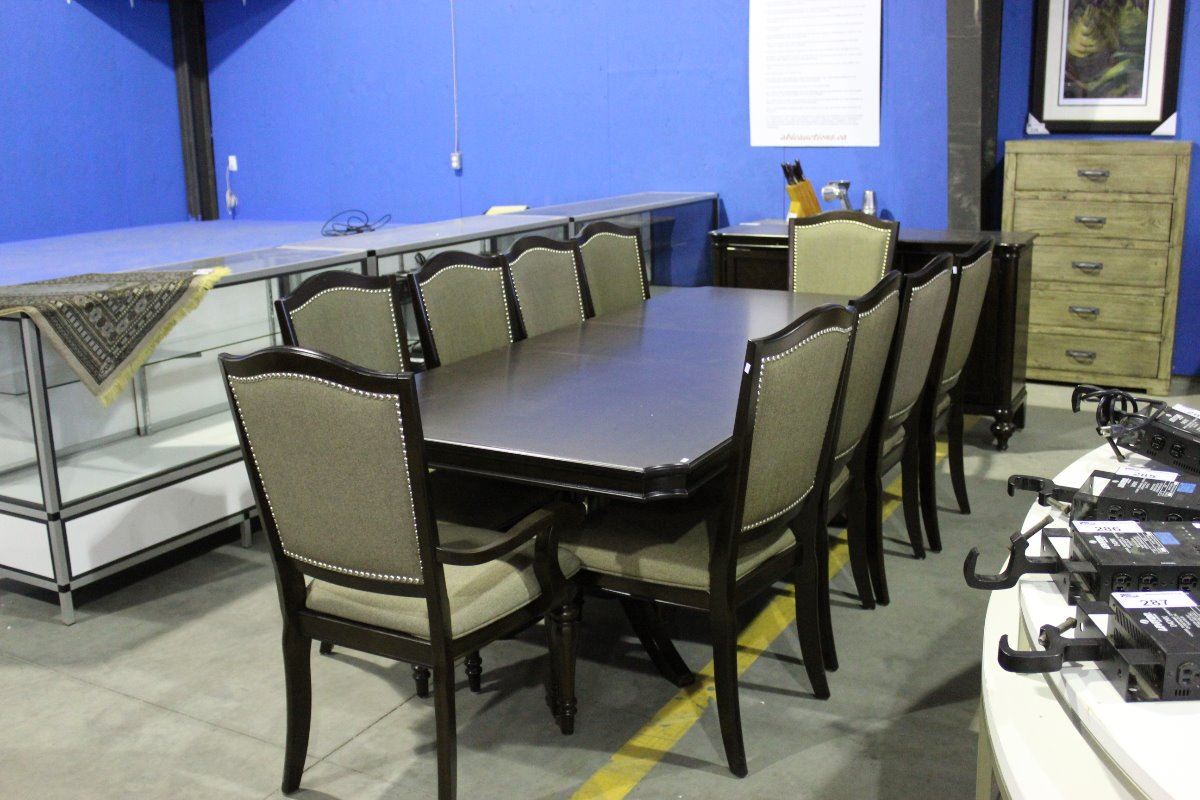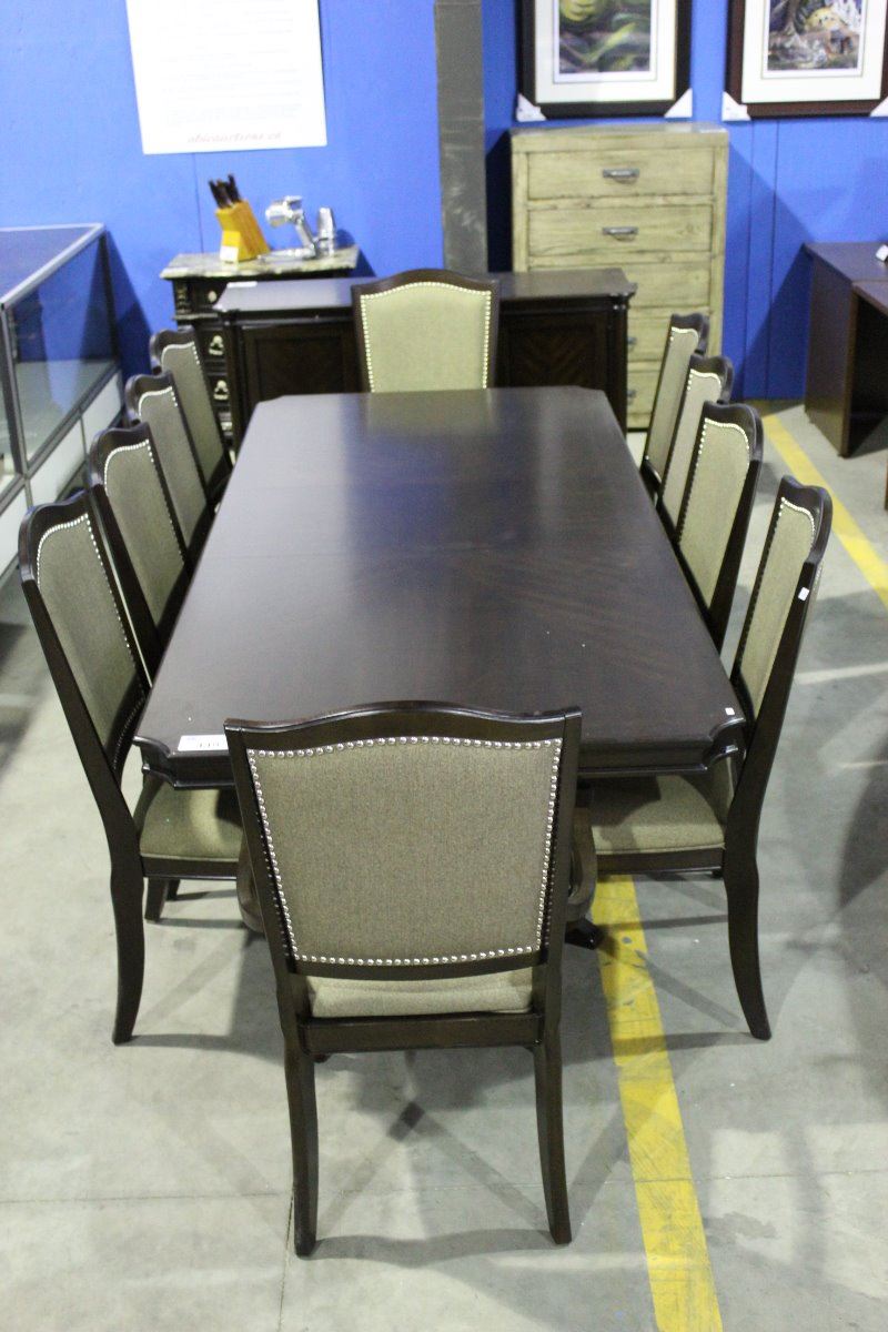 13 PIRCE CONTEMPORARY DARK WOOD DINNING ROOM SUITE WITH TABLE, 10 CHAIRS & SIDE BUFFET