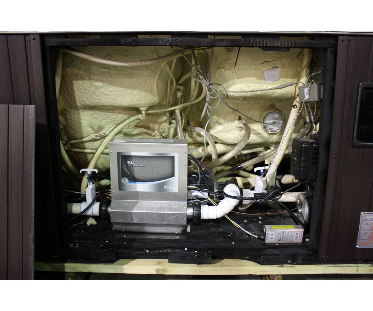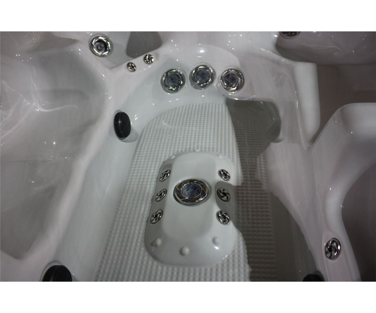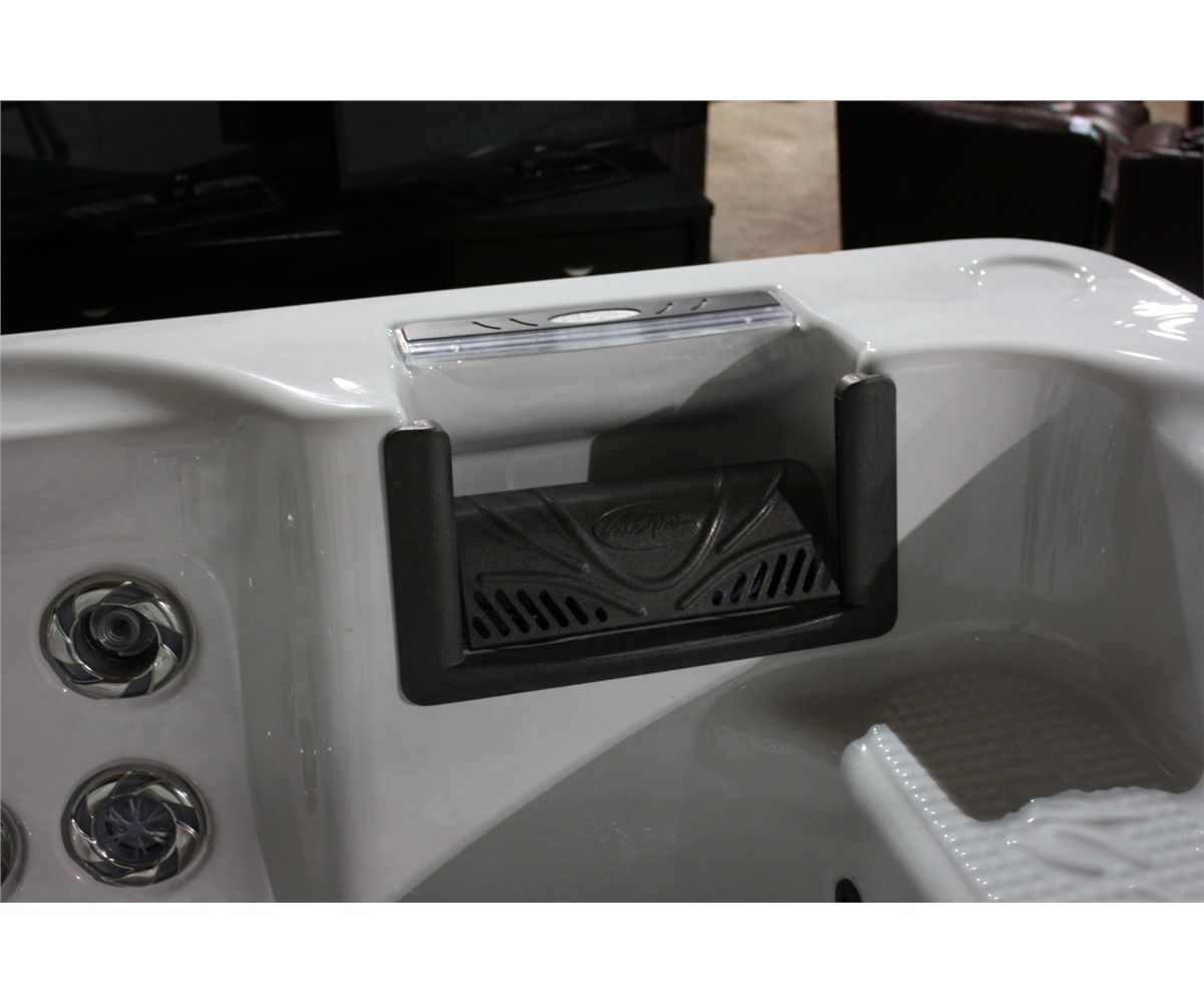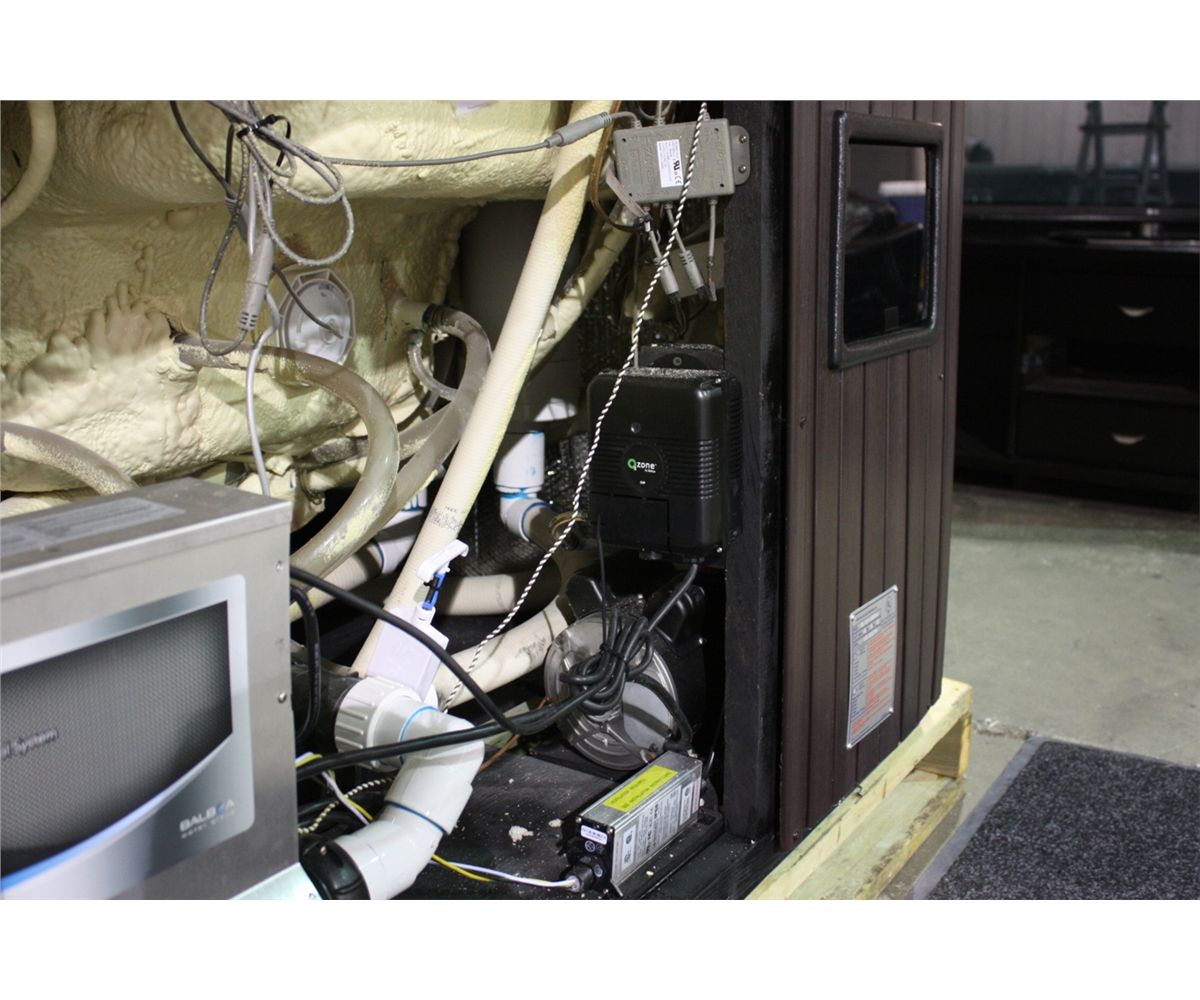 130" X 92" CAL SPAS DIAMOND SERIES HOT TUB WITH STERLING SILVER INTERIOR AND PREF. SMOKE CABINET. INCLUDES: 70 SS JETS, 3 X 5.0 HP PUMPS, PURE-SILK OZONATOR, XL 5.5 KW HEATER, SONY MARINE GRADE CD STEREO SYSTEM WITH DOCK AND SONY EXTREME SPEAKERS, LOUNGER, CENTRE CONSOLE FOOT MASSAGER, 2 TOUCH CONTROL PANELS, DUAL BASKET SURFACE FILTER, 24/7 AQUA CLEAR FILTRATION SYSTEM, LED DUAL HYDRO STREAMERS, WATERFALL, FULL LIGHTING PACKAGE. MOD. XL-S11-DI970A-11S-000718