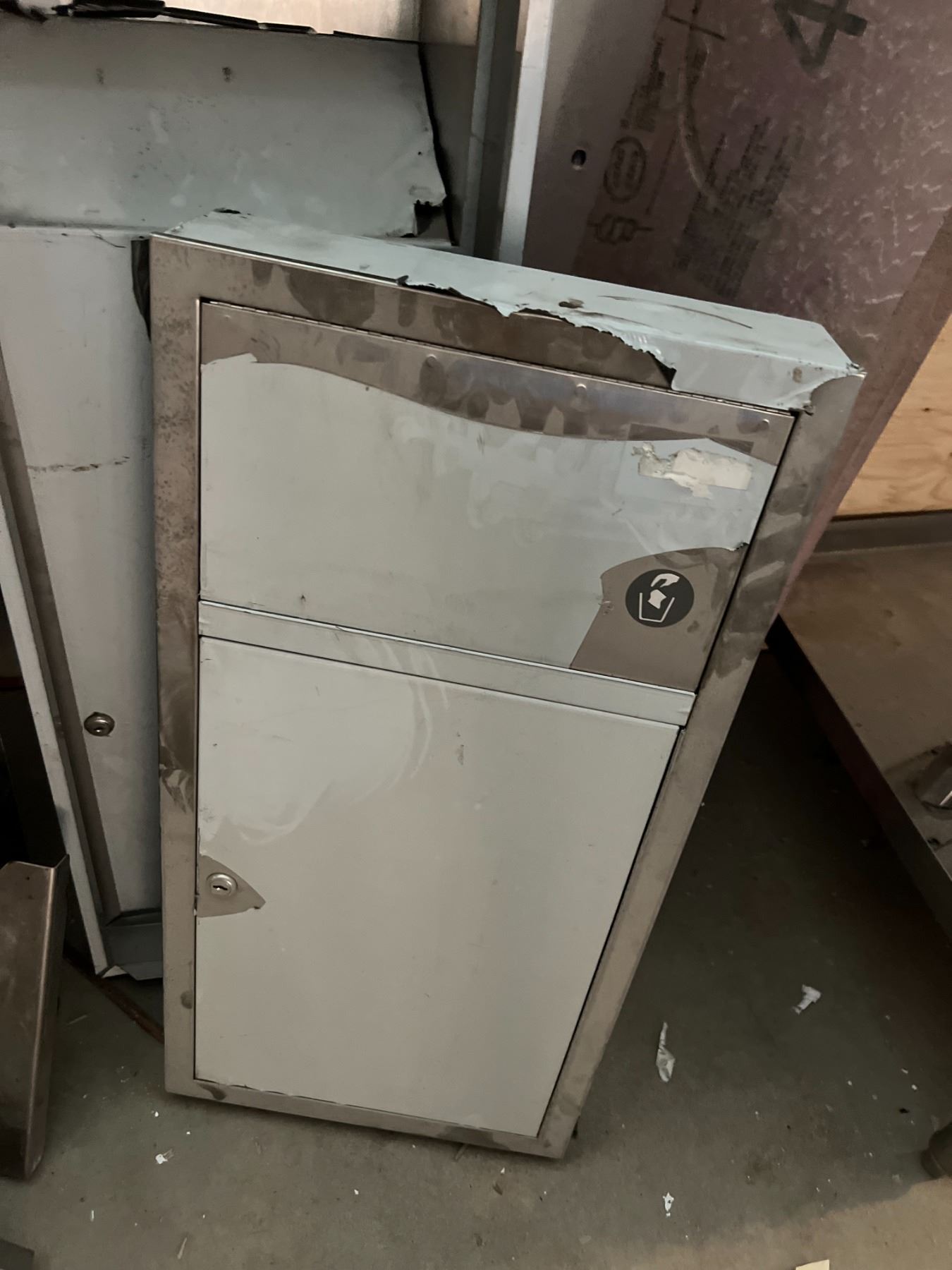 13WX55" HIGH BUILT-IN STAINLESS PAPER TOWEL DISPENSER/GARBAGE BIN. NO KEYS