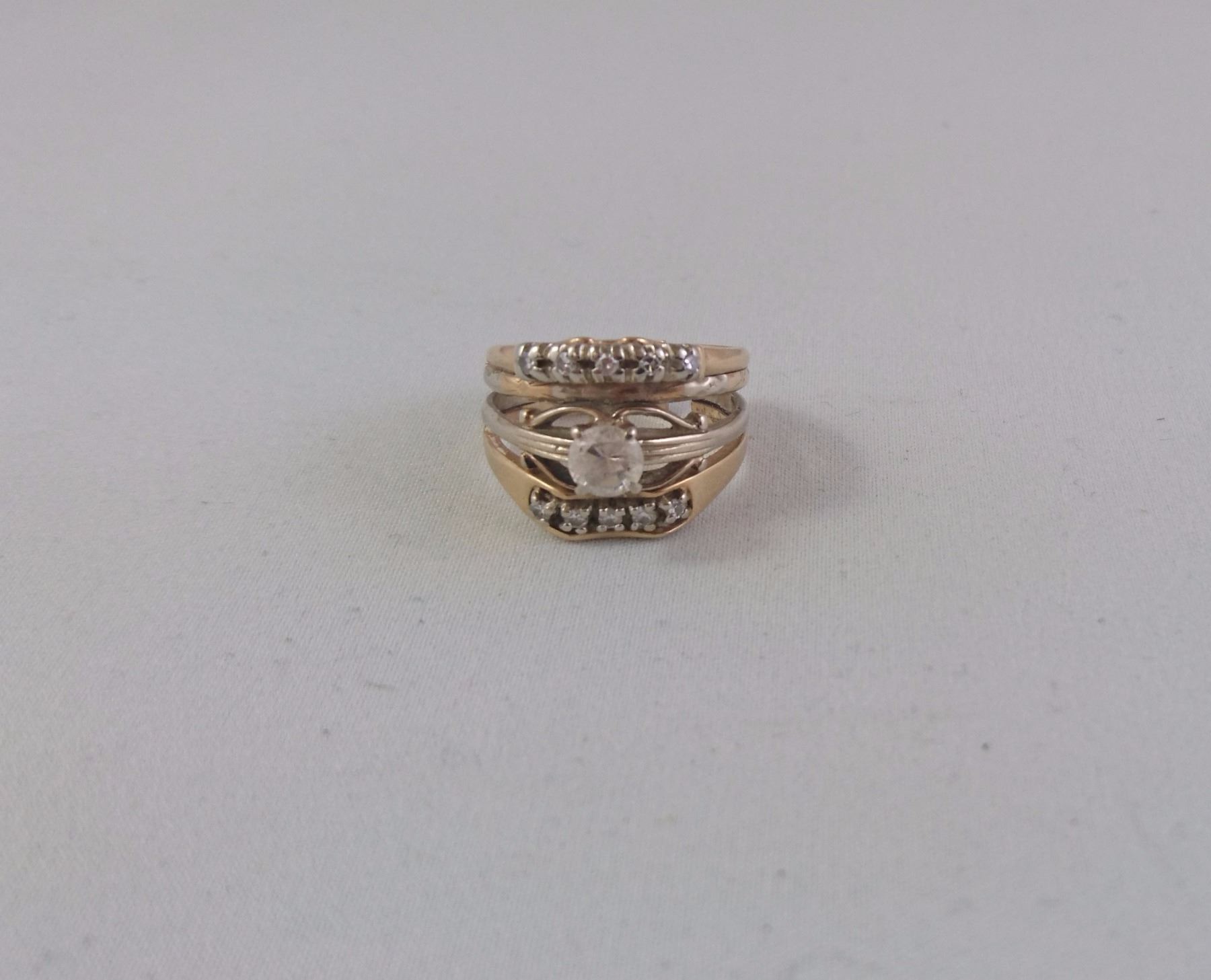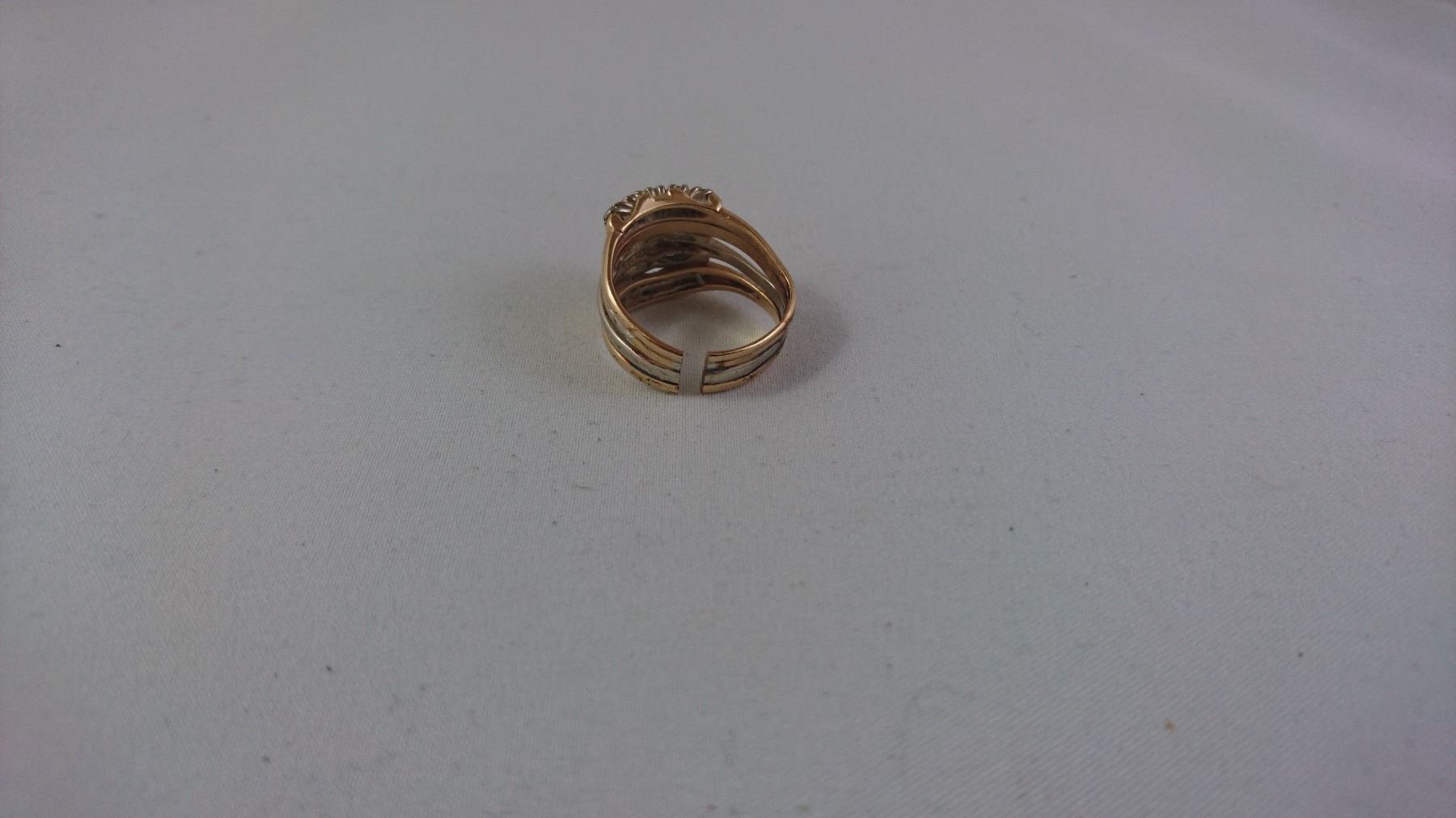 14-18 KT YELLOW AND WHITE GOLD LADIES RING (SOLDERED WITH DAMAGE TO SHANK) SET WITH 1 M-C STONE 10 SCD