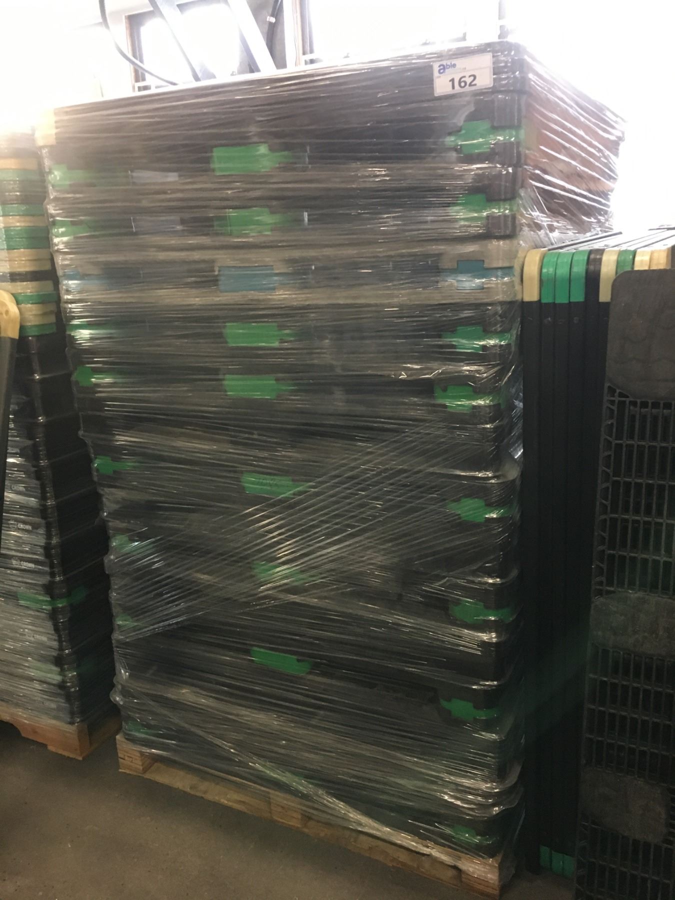 14 BLACK PLASTIC PALLETS WITH TOPS