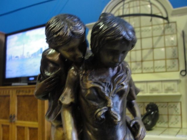 14" BRONZE STATUE BOY AND GIRL 'EMBRACING '