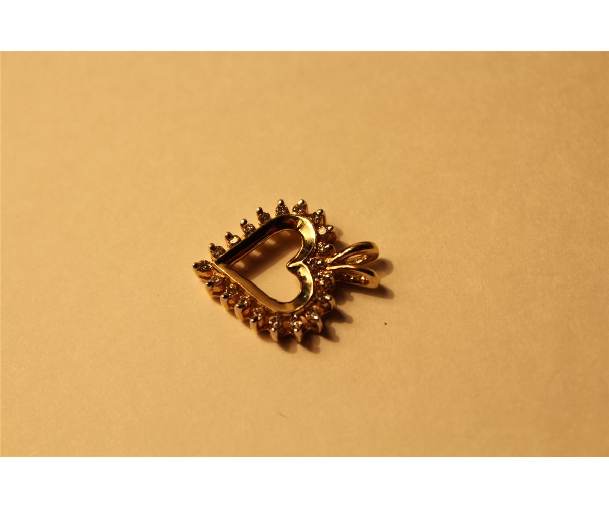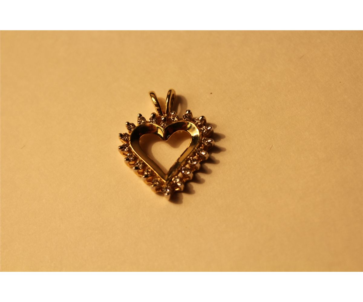 14 KT YELLOW GOLD DIAMOND SET HEART SHAPED PENDANT CLAW SET WITH 20 ROUND BRILLIANT CUT DIAMONDS APPROX. 0.26 CARATS. REPLACEMENT VALUE: $700.00