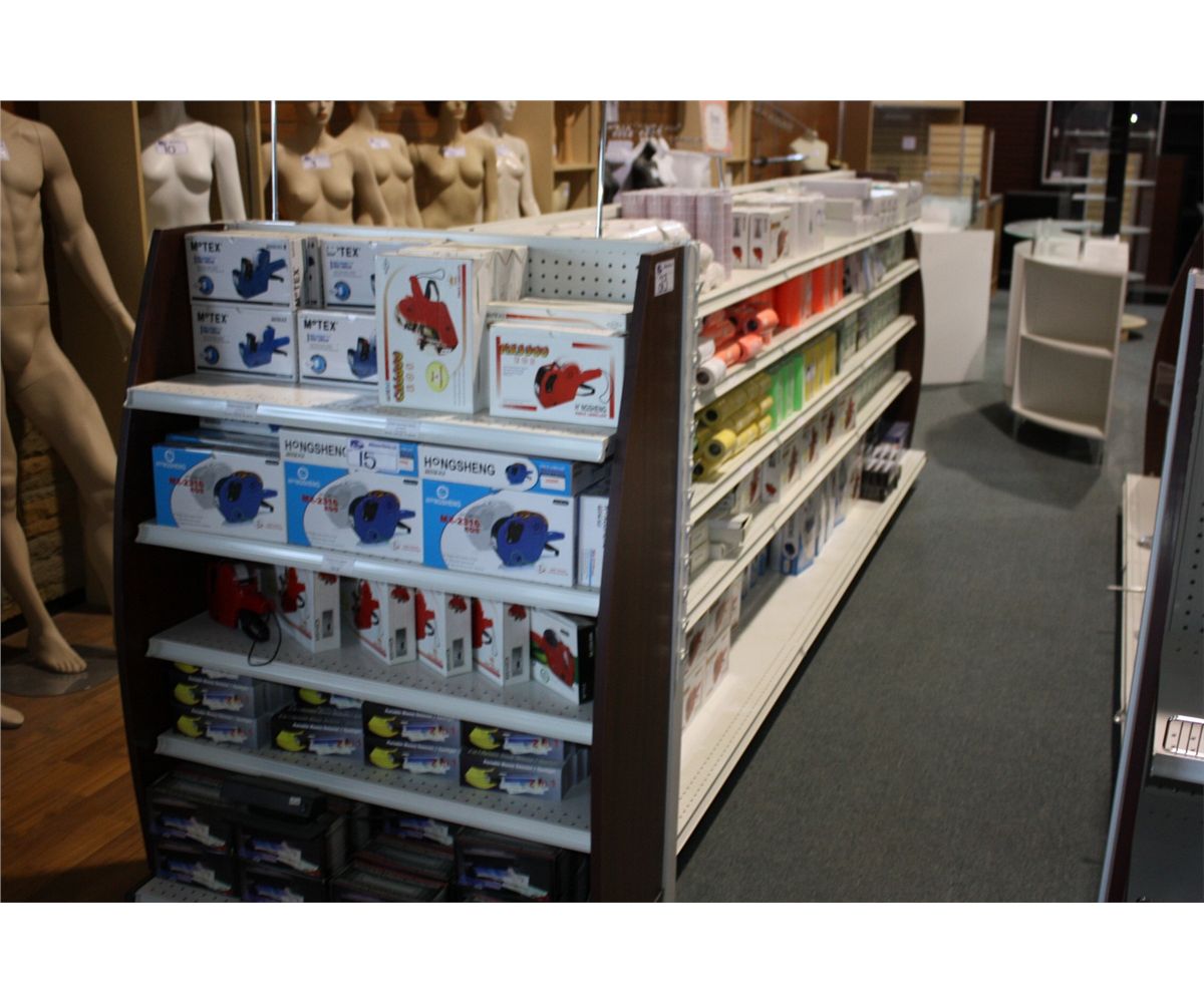 14' LONG SECTION OF PEG BOARD GONDOLA RETAIL DISPLAY SHELVING WITH PEGBOARD BACKS AND END CAP