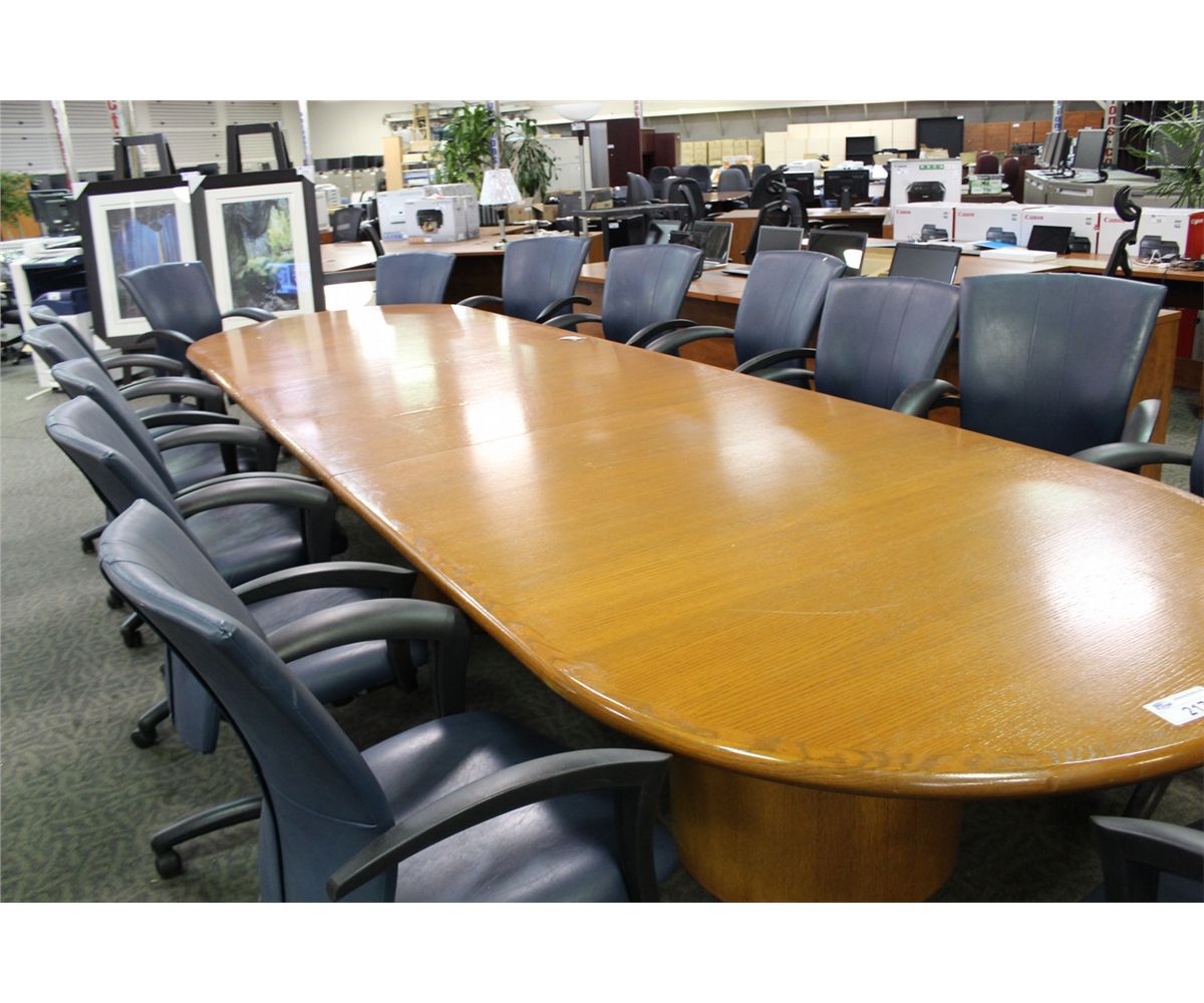 14' RACETRACK BOARD ROOM TABLE W/ 4' REMOVABLE CENTER PANEL