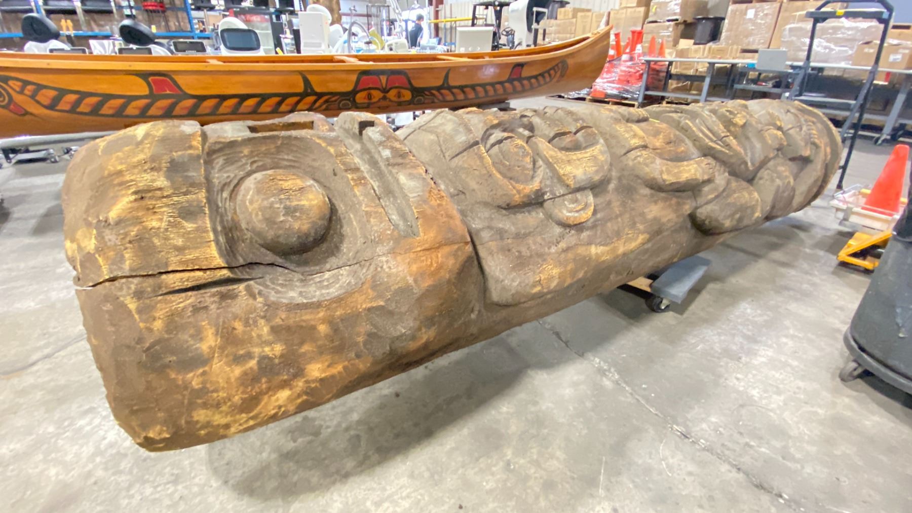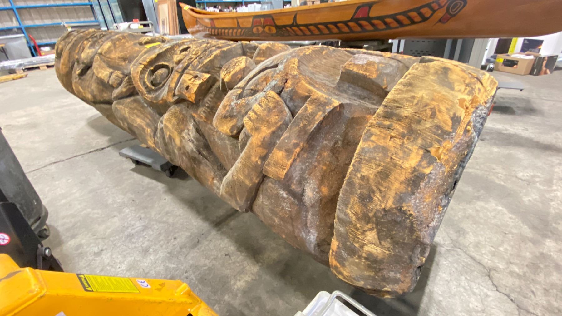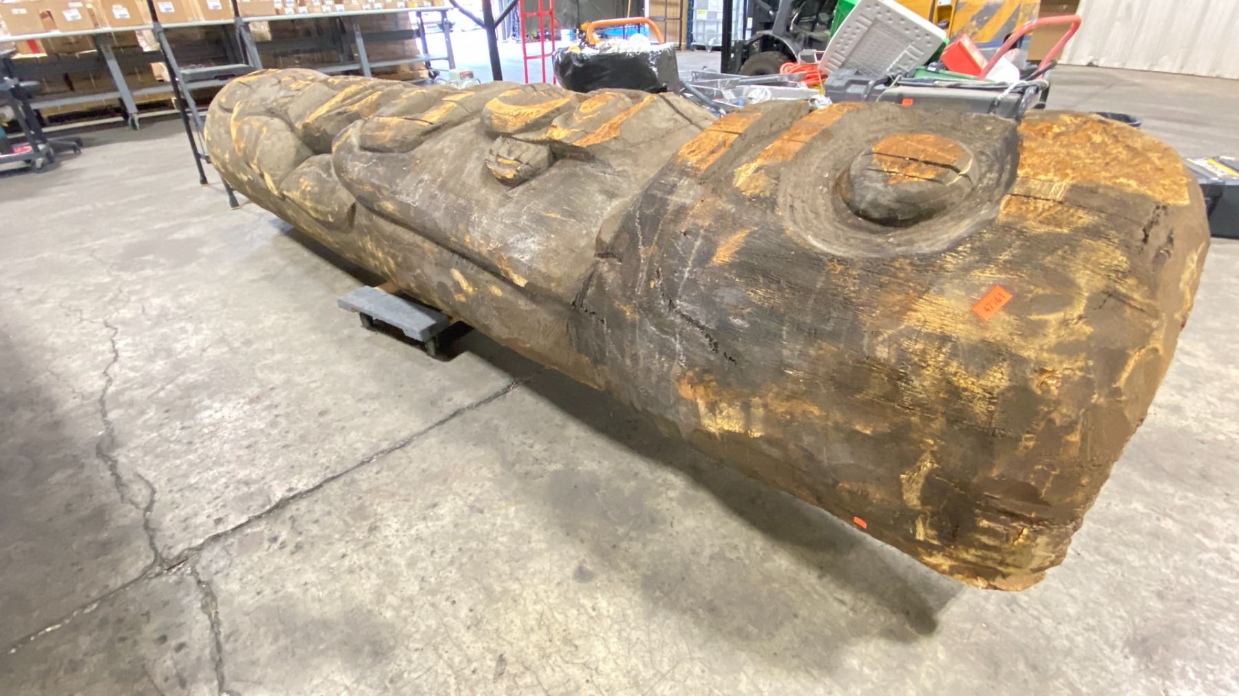 145"H X 30"W CARVED FOAM 3 DEITY REPLICA FIRST NATION TOTEM POLE