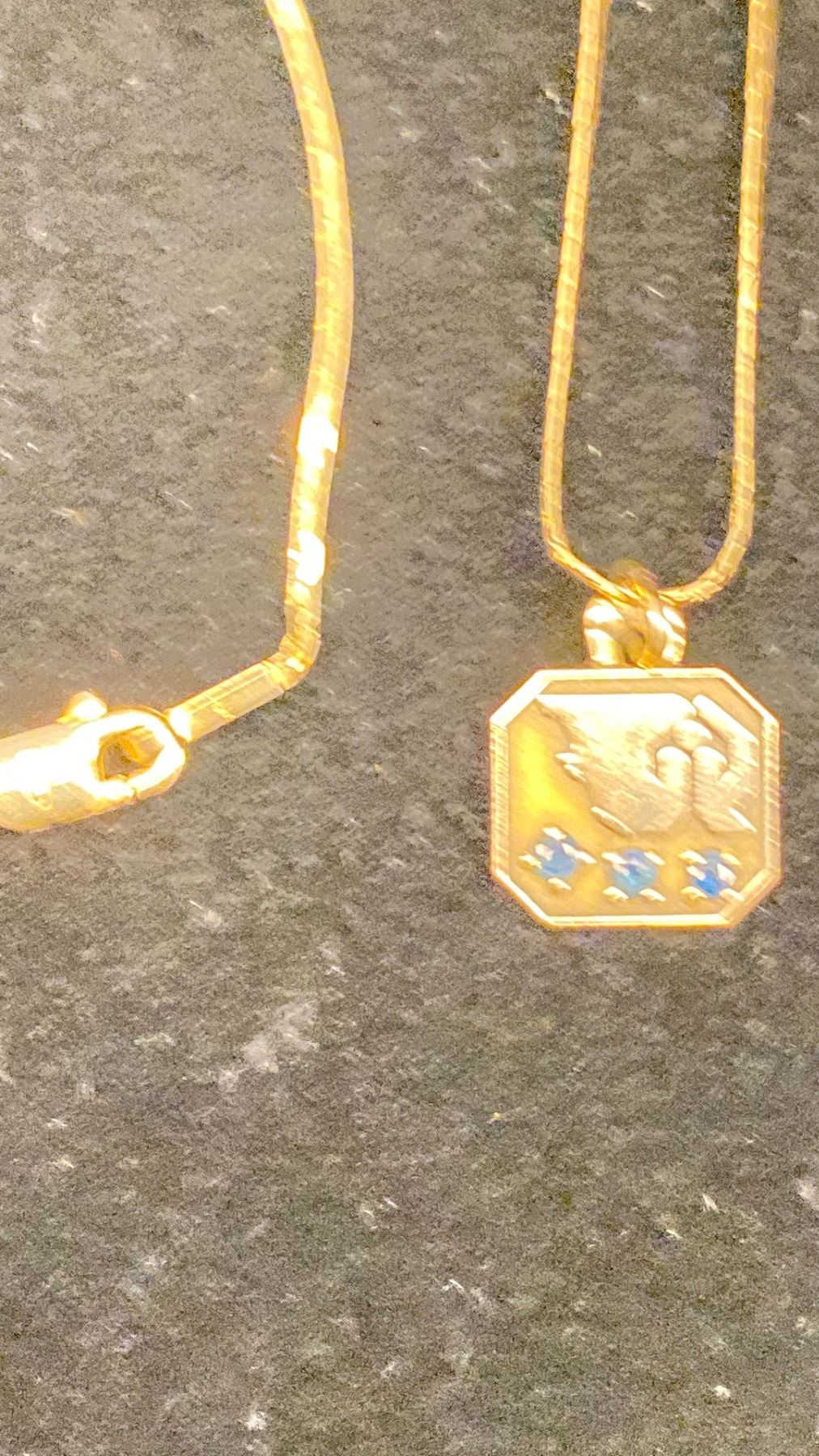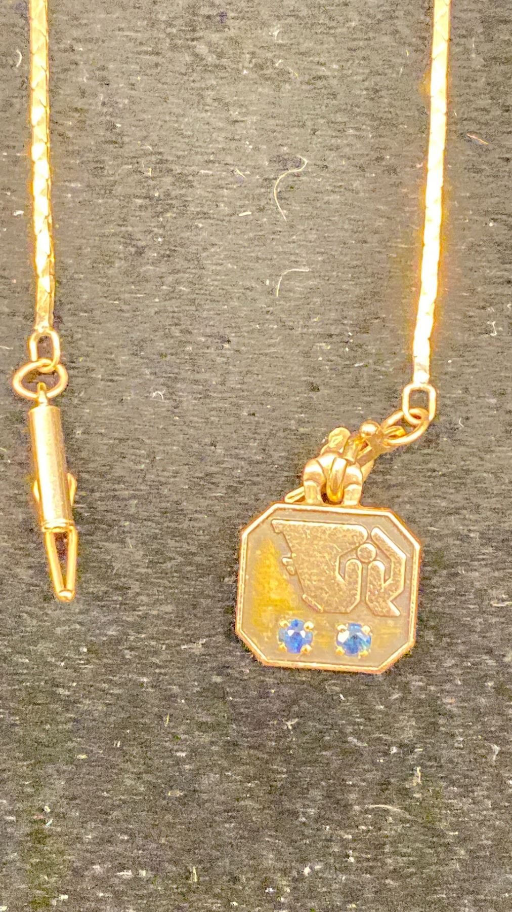 14K CHAIN (16") WITH 10K PENDANT SET WITH SAPPHIRES, 14K BRACELET WITH 10K CHARM SET WITH SAPPHIRES (7.3G TOTAL)