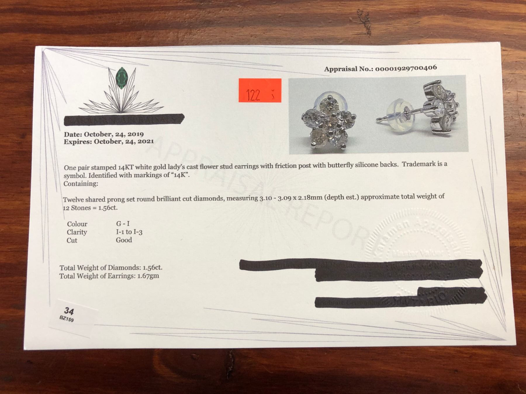 14K DIAMOND (1.56CT) EARRINGS