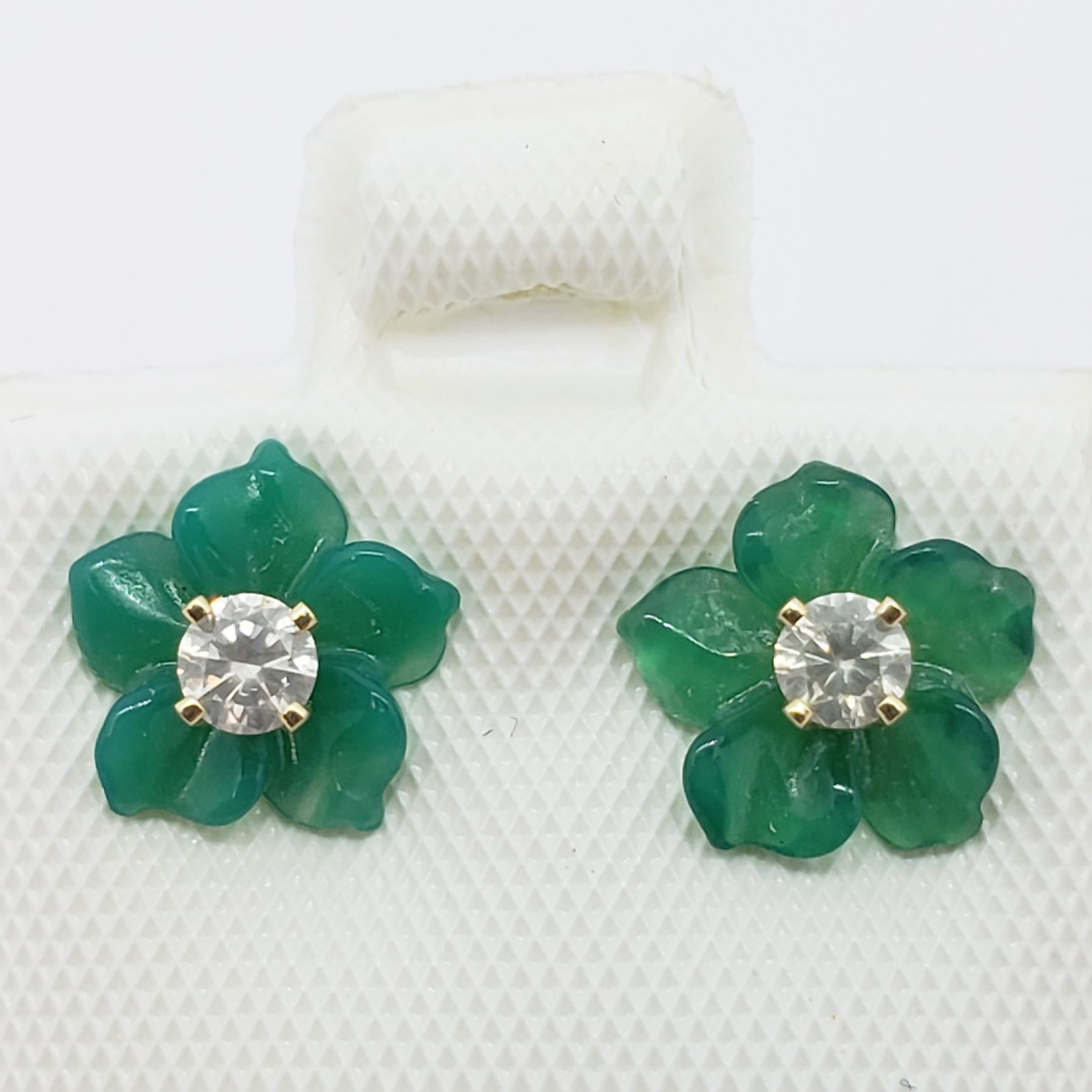 14K DIAMOND STUD (SI2-I1)(0.2CT) GREEN AGATE FLOWER JACKET EARRINGS