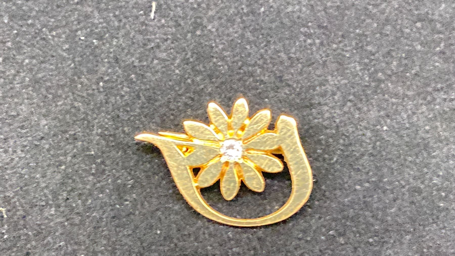 14K FLORAL BROOCH SET WITH DIAMOND (2G)