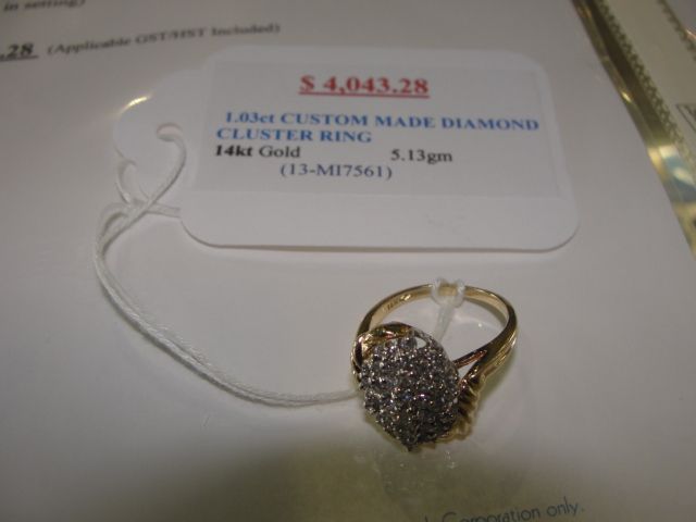 14K GOLD 1.03CT CUSTOM MADE DIAMOND CLUSTER RING APPRAISED VALUE $4043.28