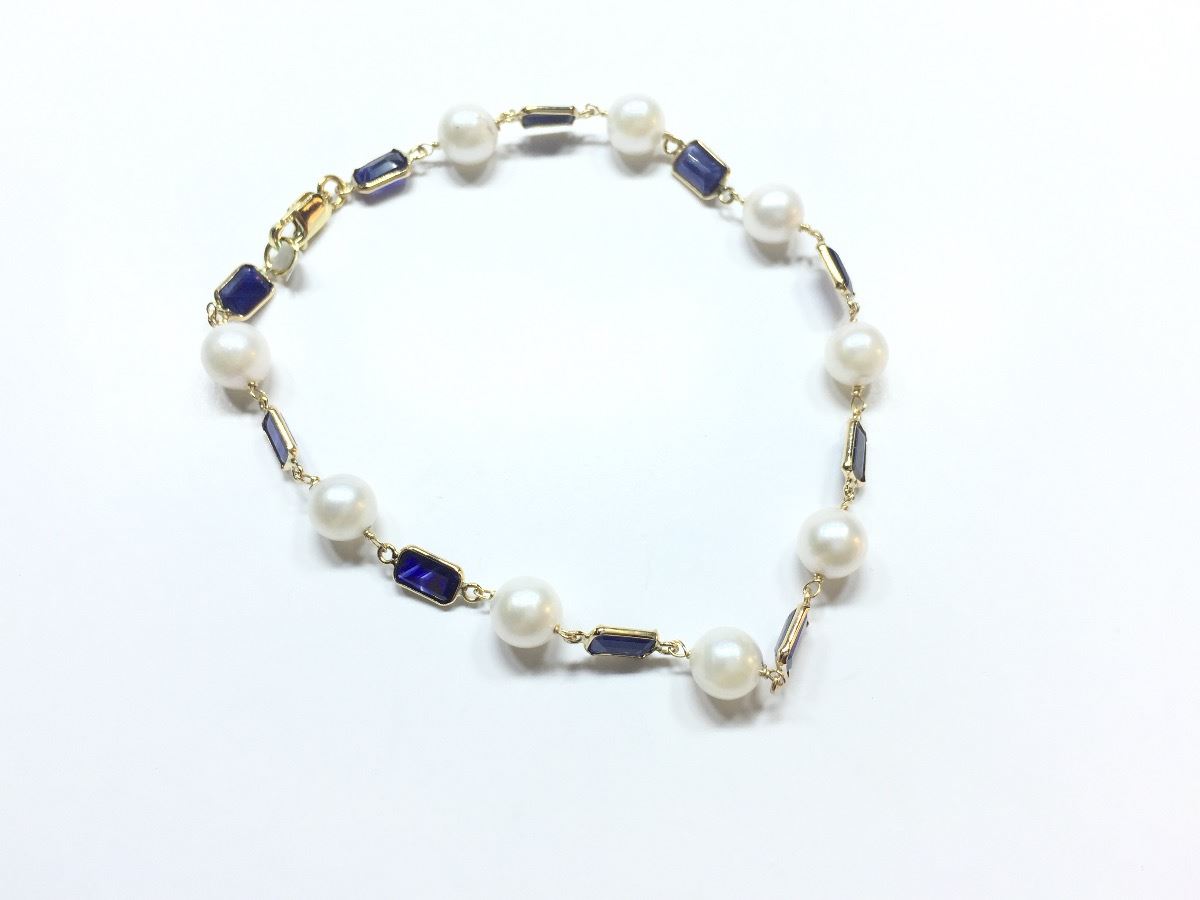 14K GOLD 6.0 CT SAPPHIRE AND FRESHWATER PEARL BRACELET, APPRAISED VALUE: $3,809