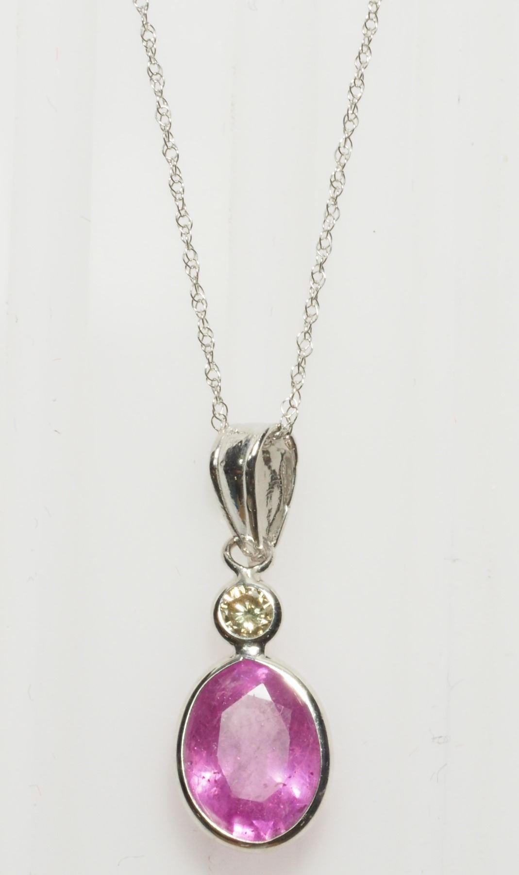14K GOLD ENHANCED PINK SAPPHIRE(2.6CT) DIAMOND (0.06CT) PENDANT WITH 10K CHAIN APPRAISED VALUE $2015
