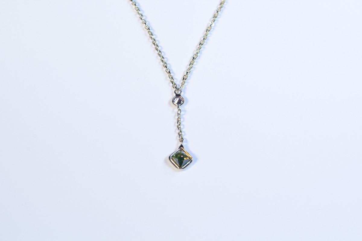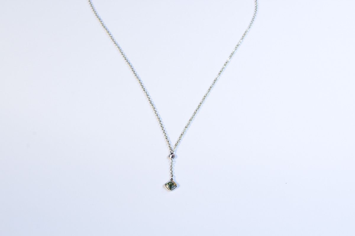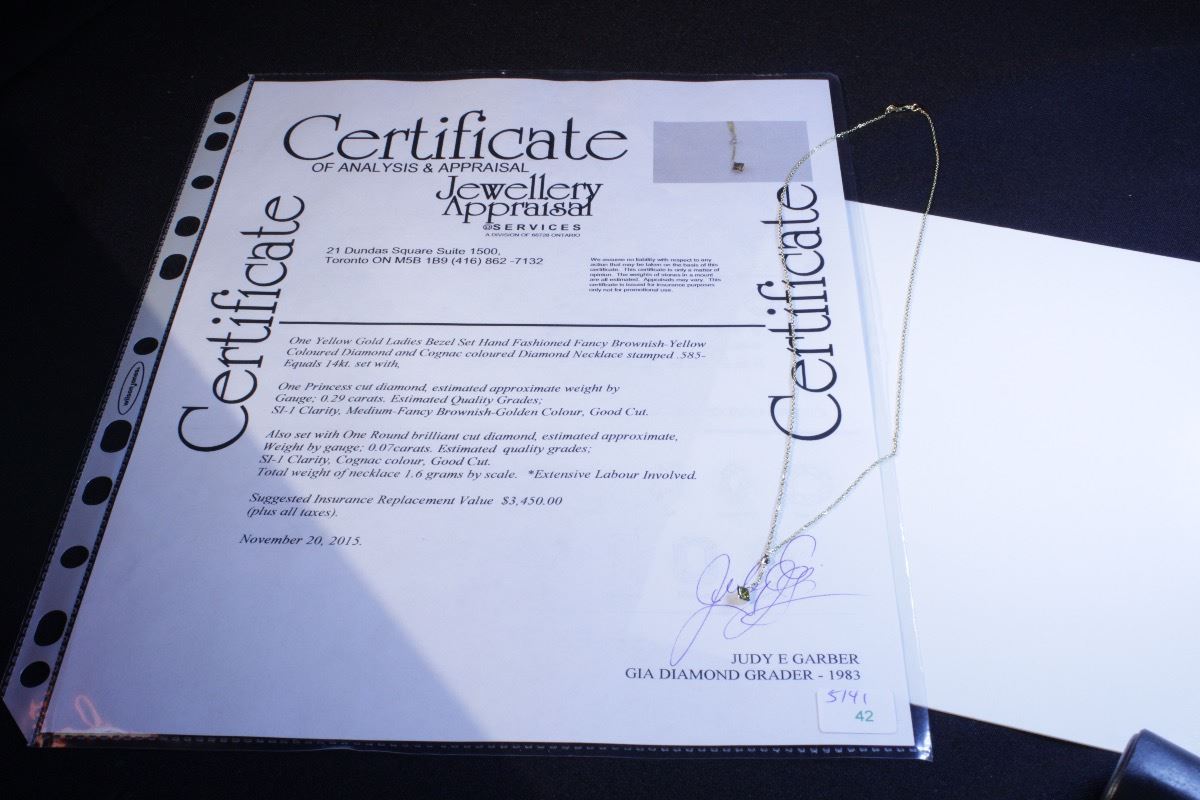 14K GOLD YELLOW-COGNAC & WHITE DIAMOND (0.36CT) NECKLACE 1 PRINCESS CUT YELLOW-COGNAC DIAMOND (.29CT) & 1 ROUND BRILLIANT CUT WHITE DIAMOND, APPRAISED AT $3450