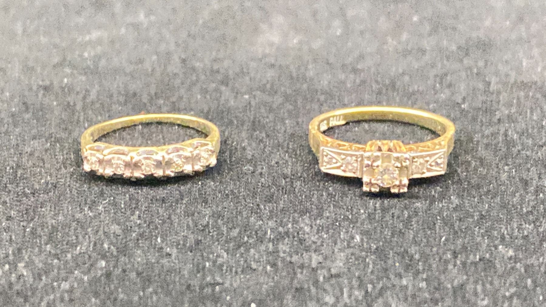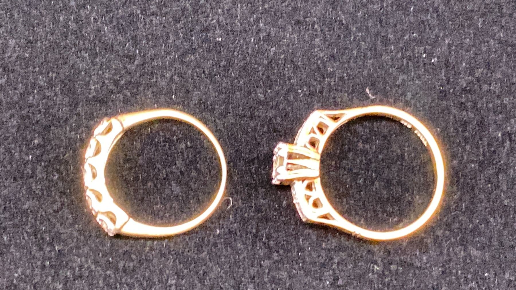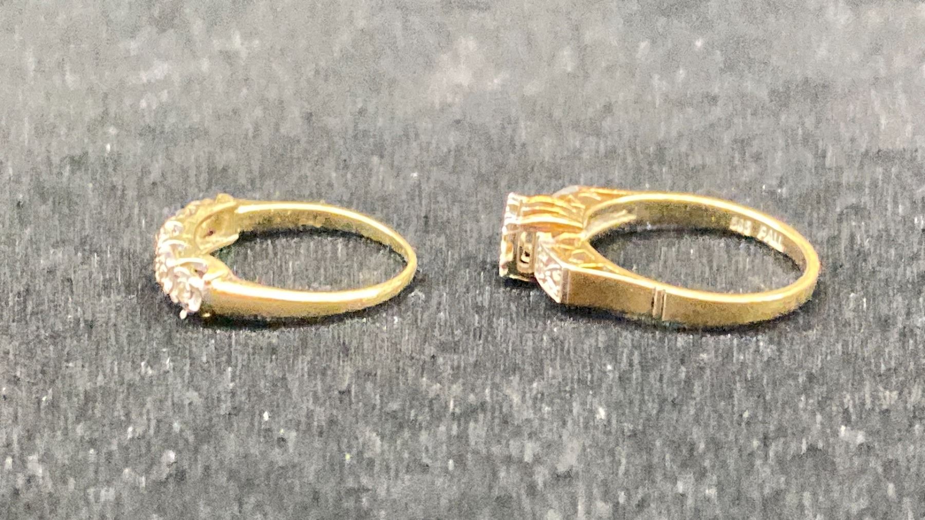 14K LADIES ENGAGEMENT RING SET WITH DIAMONDS (CENTER 0.09CT) & 14K/PALLADIUM LADIES WEDDING RING SET WITH DIAMONDS (5.2G TOTAL)