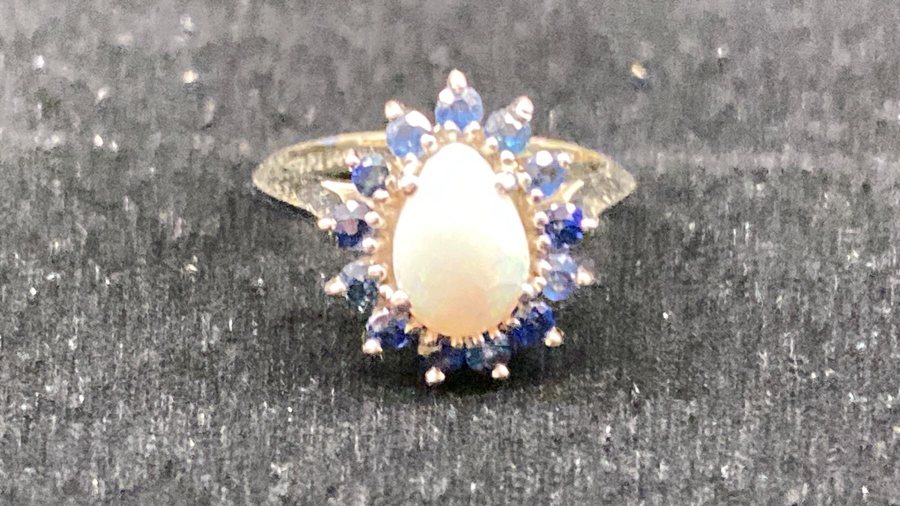 14K LADIES RING SET WITH OPAL AND SAPPHIRES (2.9G)
