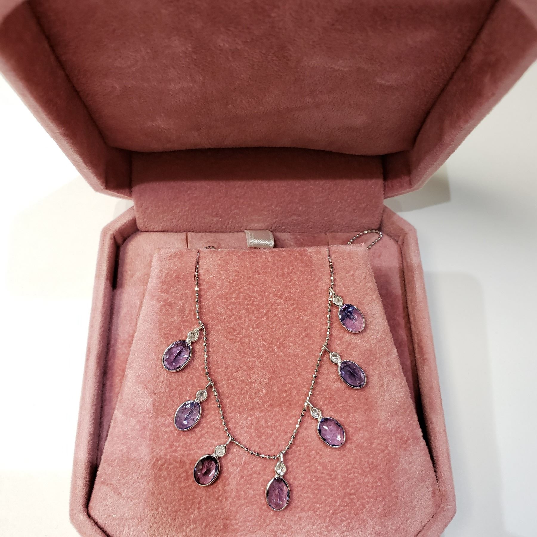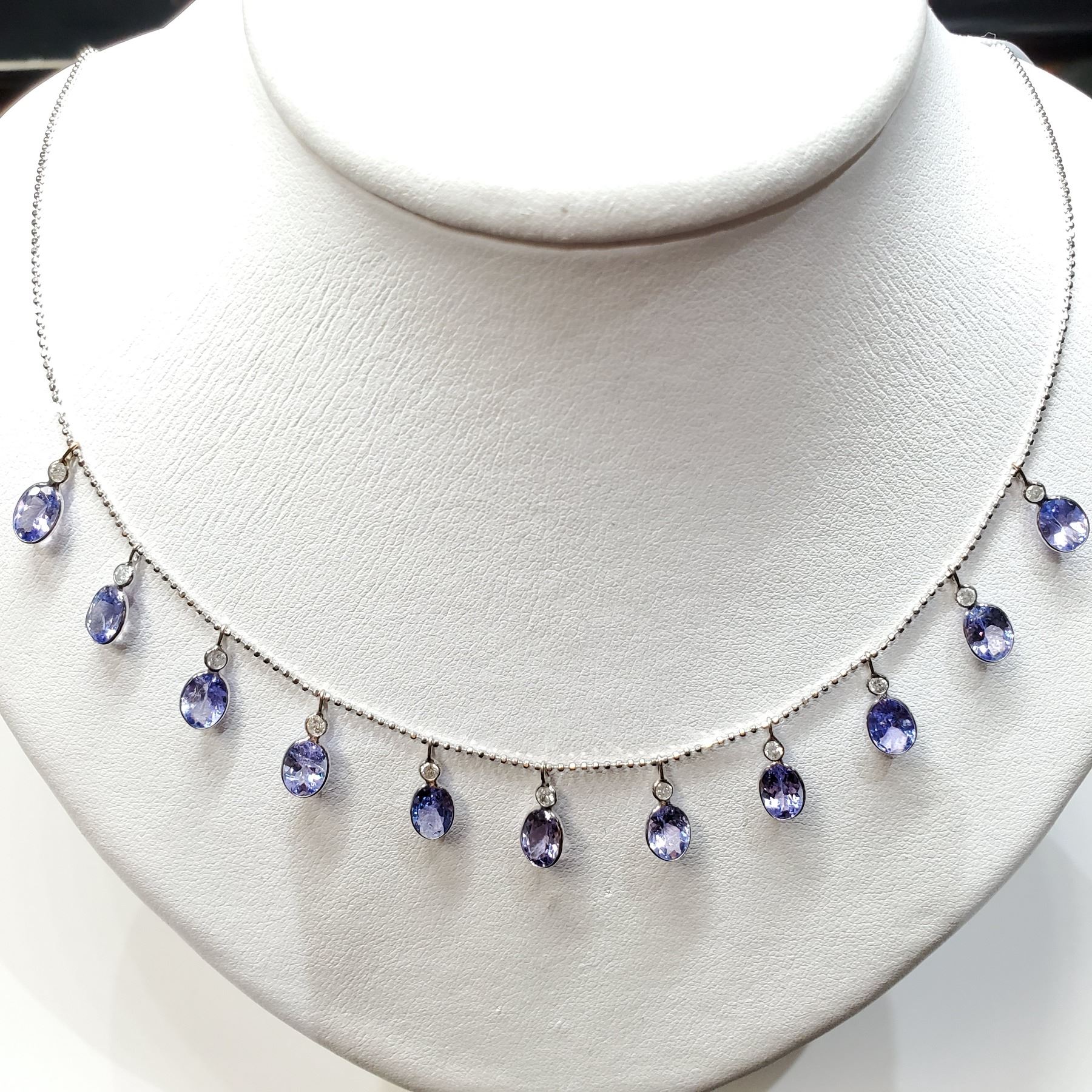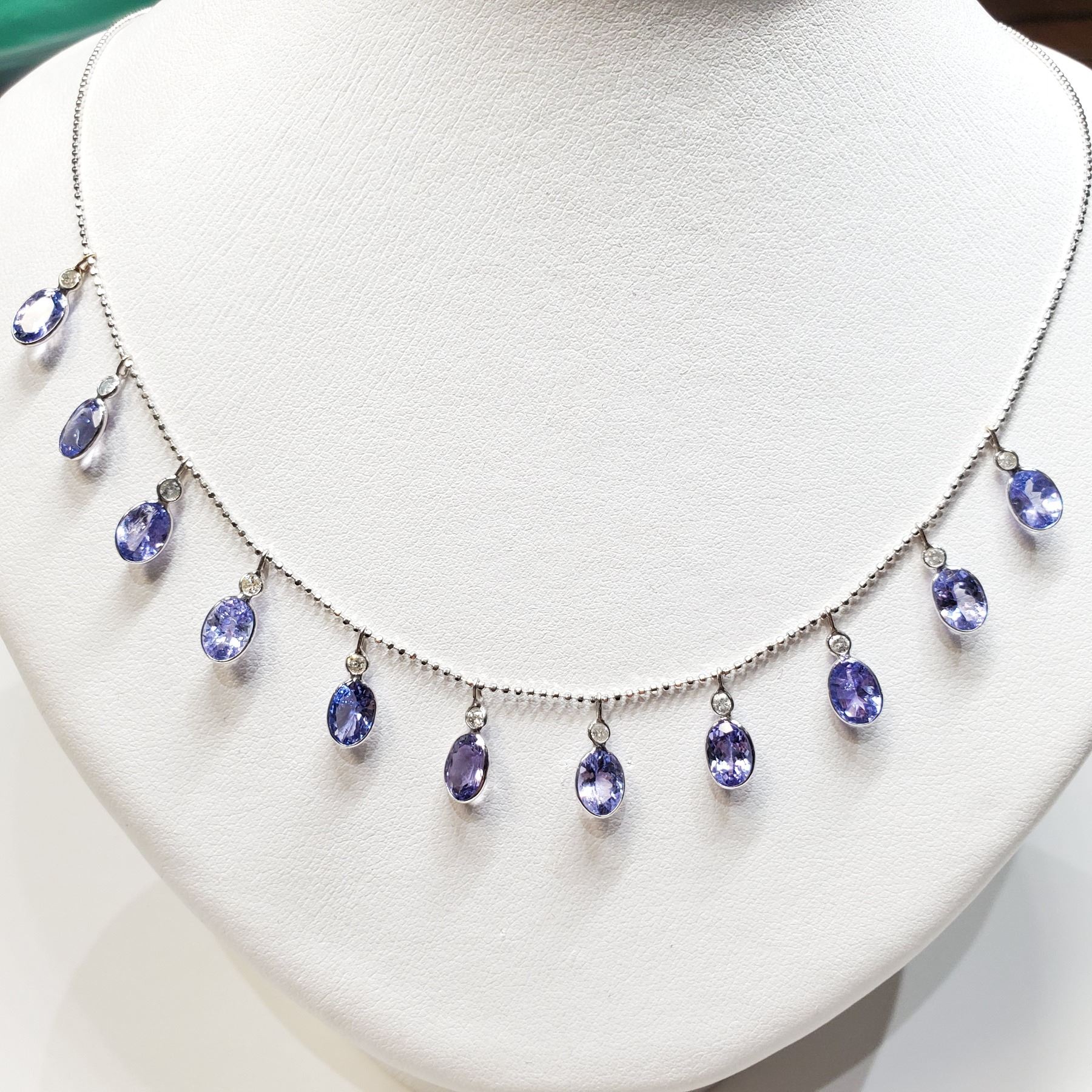 14K TANZANITE DECEMBER B-STONE 16"(9.2CT) DIAMOND NECKLACE
