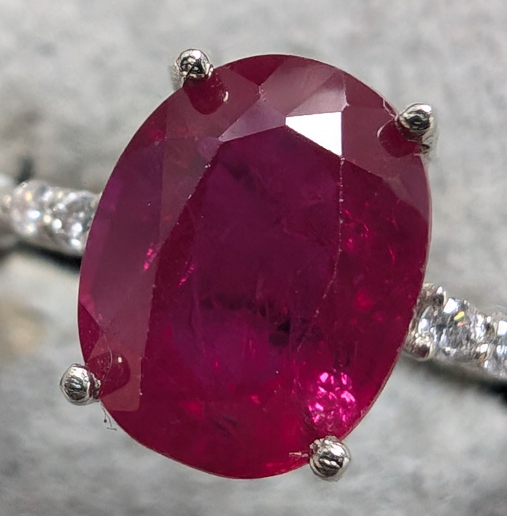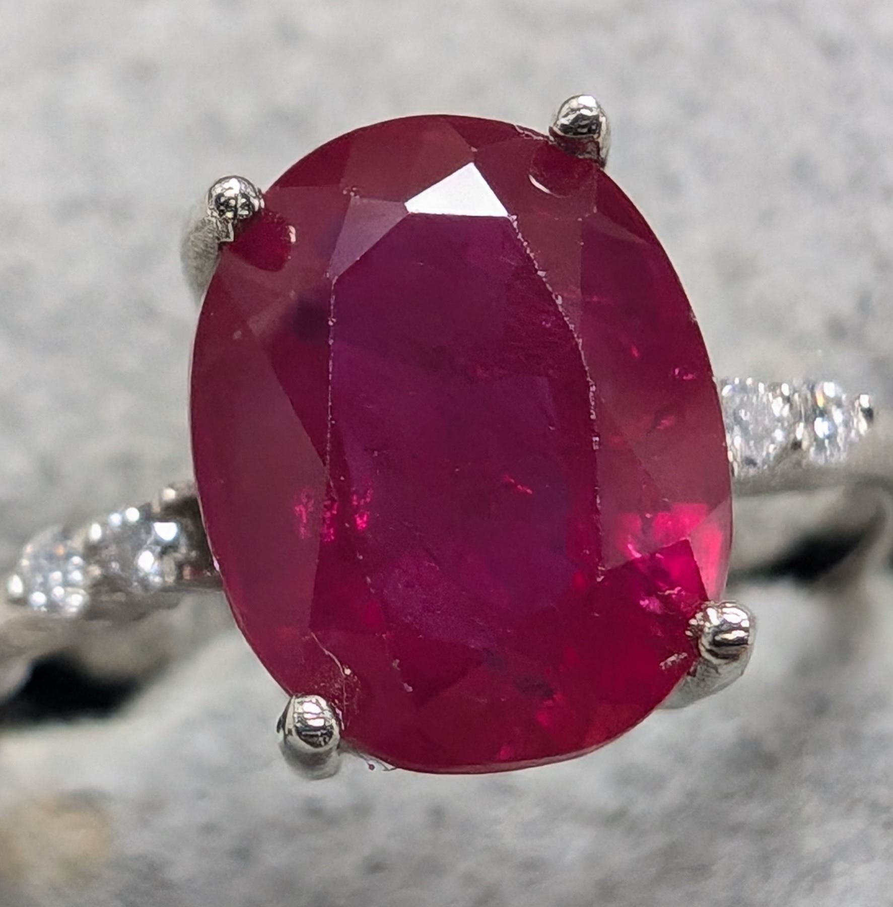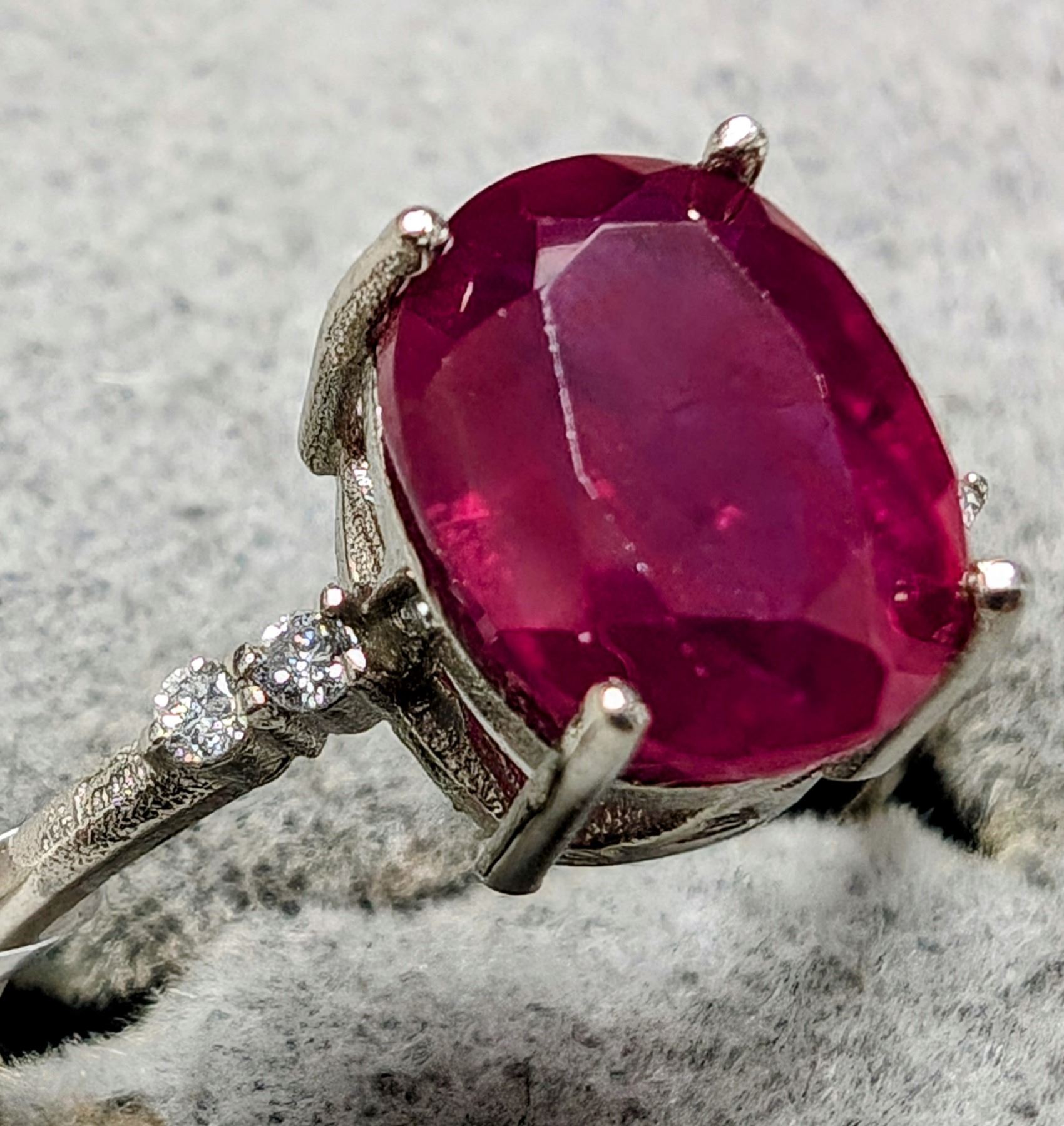 14K WHITE GOLD 2G NATURAL RUBY 1.6CT & LAB DIAMOND 0.06CT RING (~SIZE 6.5)