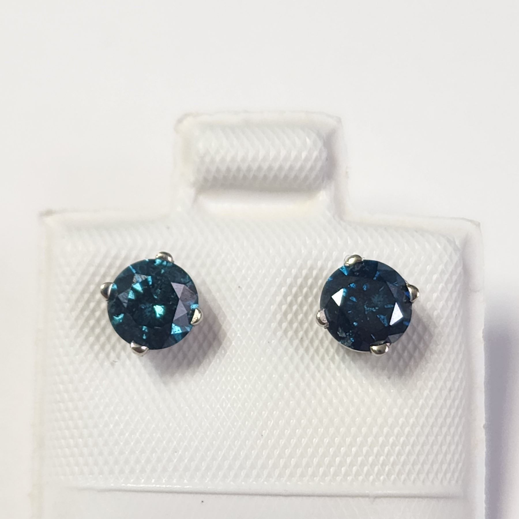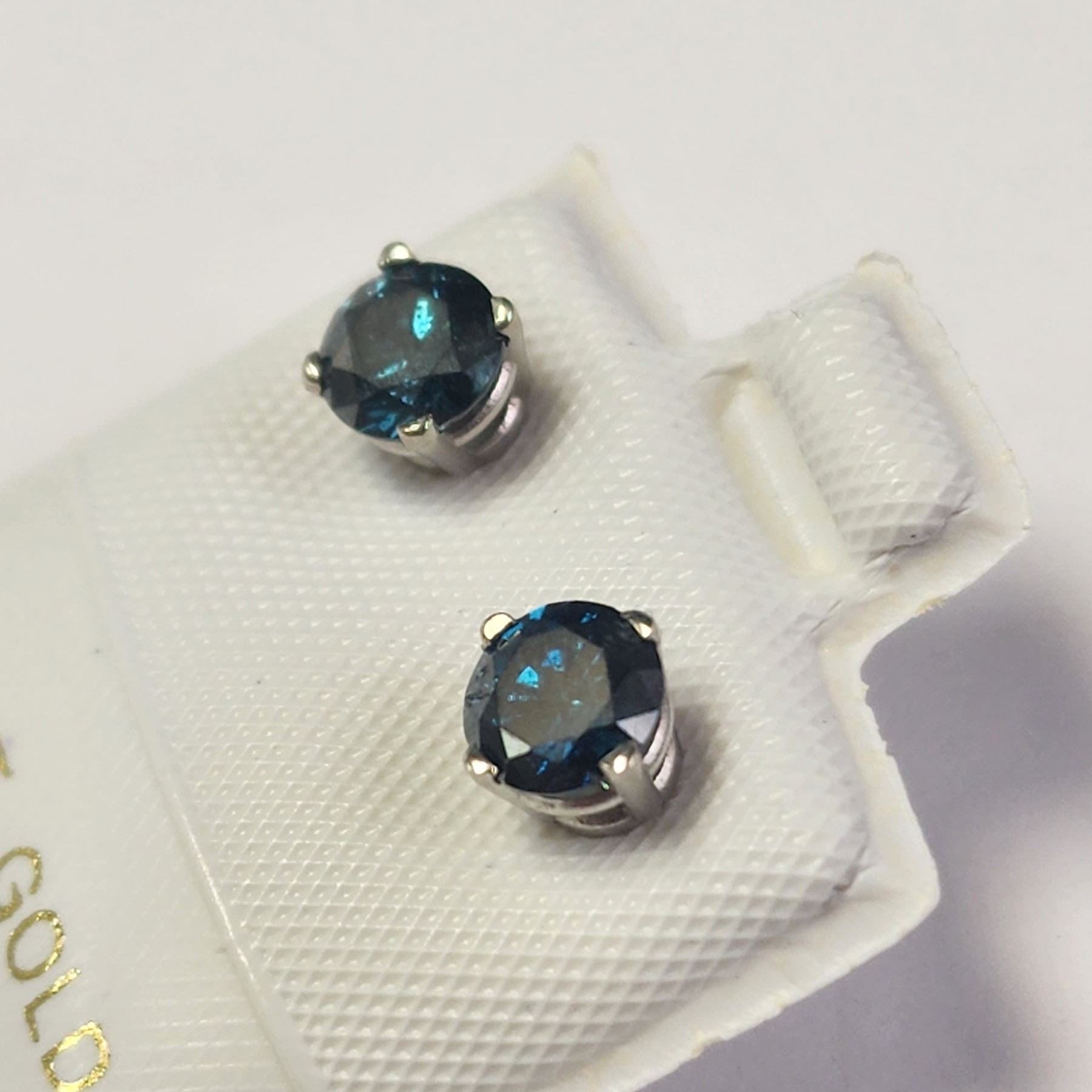 14K WHITE GOLD BLUE DIAMOND TREATED(0.98CT) EARRINGS (WEIGHT 0.73G)