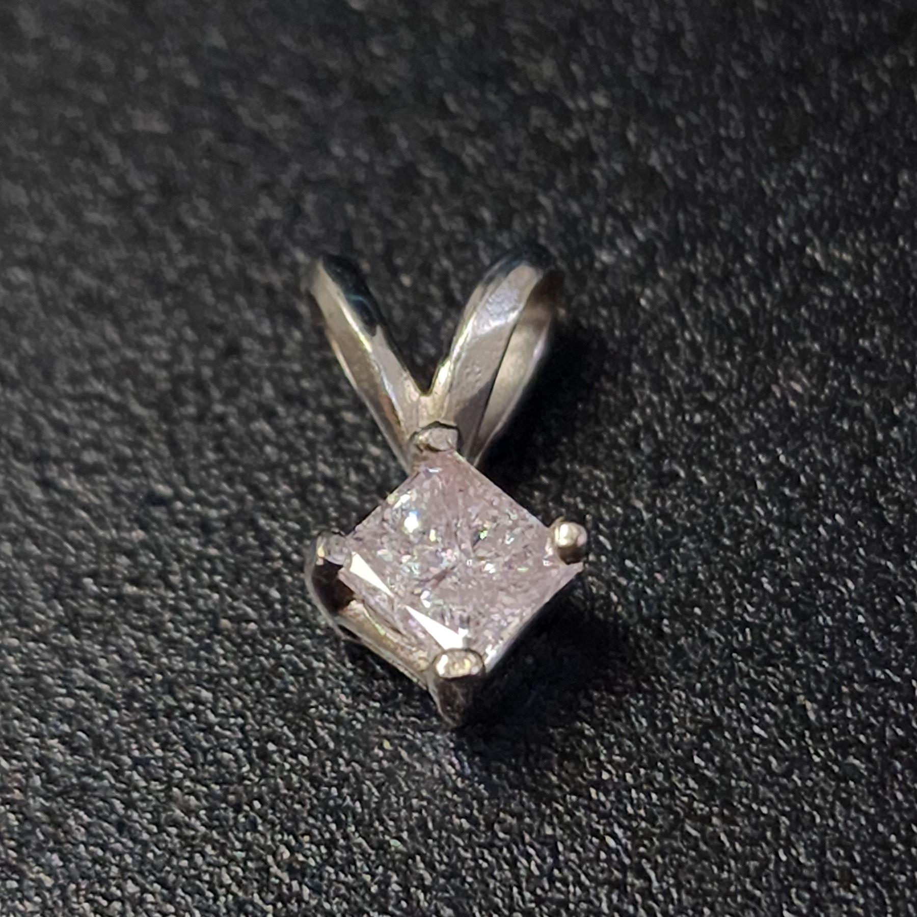 14K WHITE GOLD DIAMOND (0.25CT, LIGHT PINK) PENDANT (WEIGHT 0.41G)