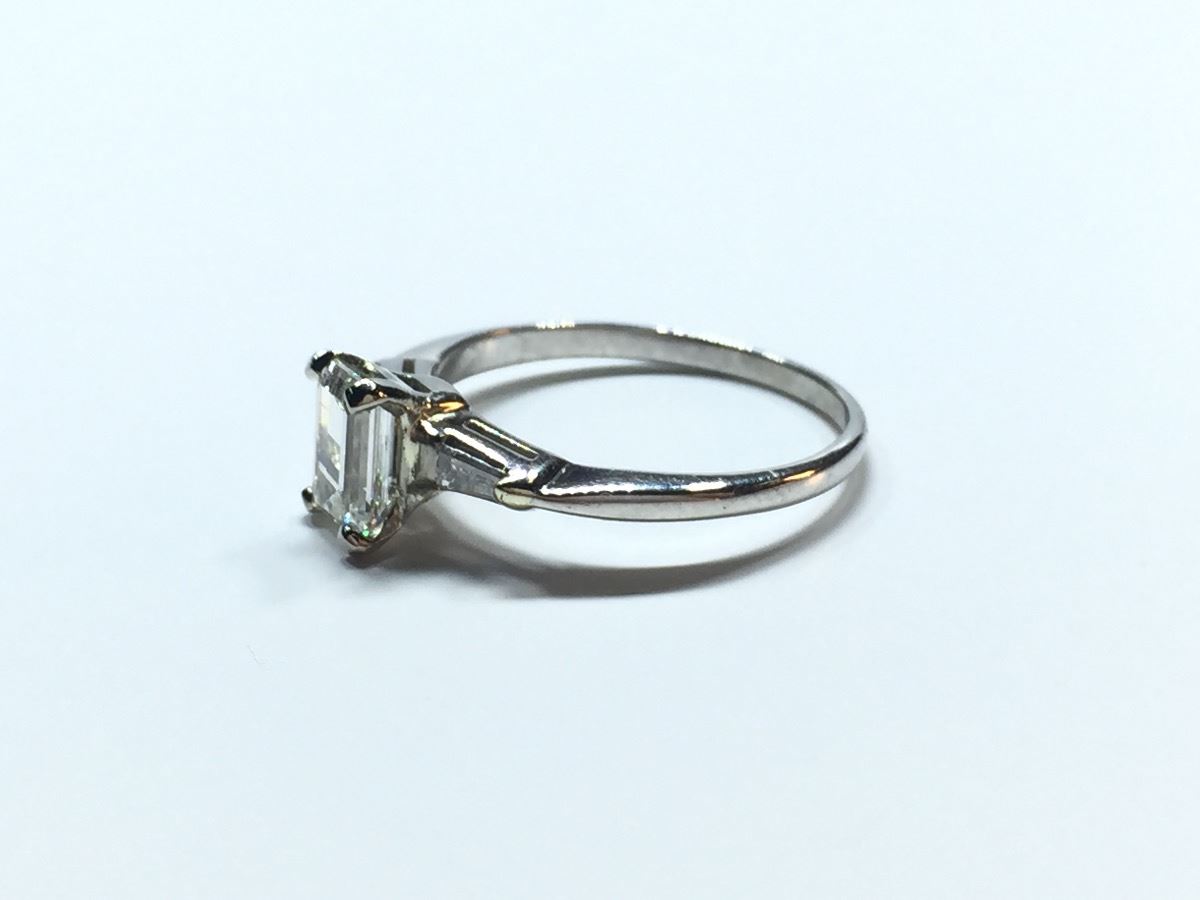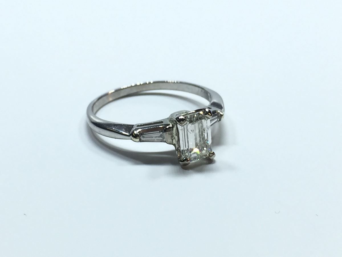 14K WHITE GOLD DIAMOND ENGAGEMENT RING W/ GIA 0.91CT SI-2 G EMERALD CUT DIAMOND, APPRAISED VALUE: $10,175