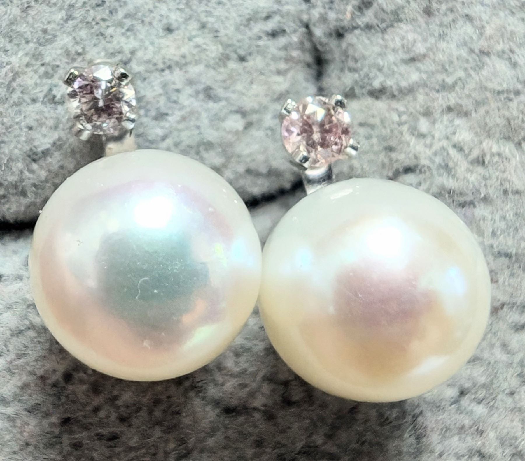 14K WHITE GOLD FRESH WATER PEARL AND LAB DIAMOND 0.03CT EARRINGS, SUGGESTED RETAIL $450