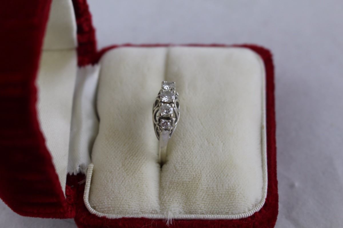 14K WHITE GOLD LADIES RING SET WITH A TOTAL OF 5 DIAMONDS, RETAIL VALUE $2450