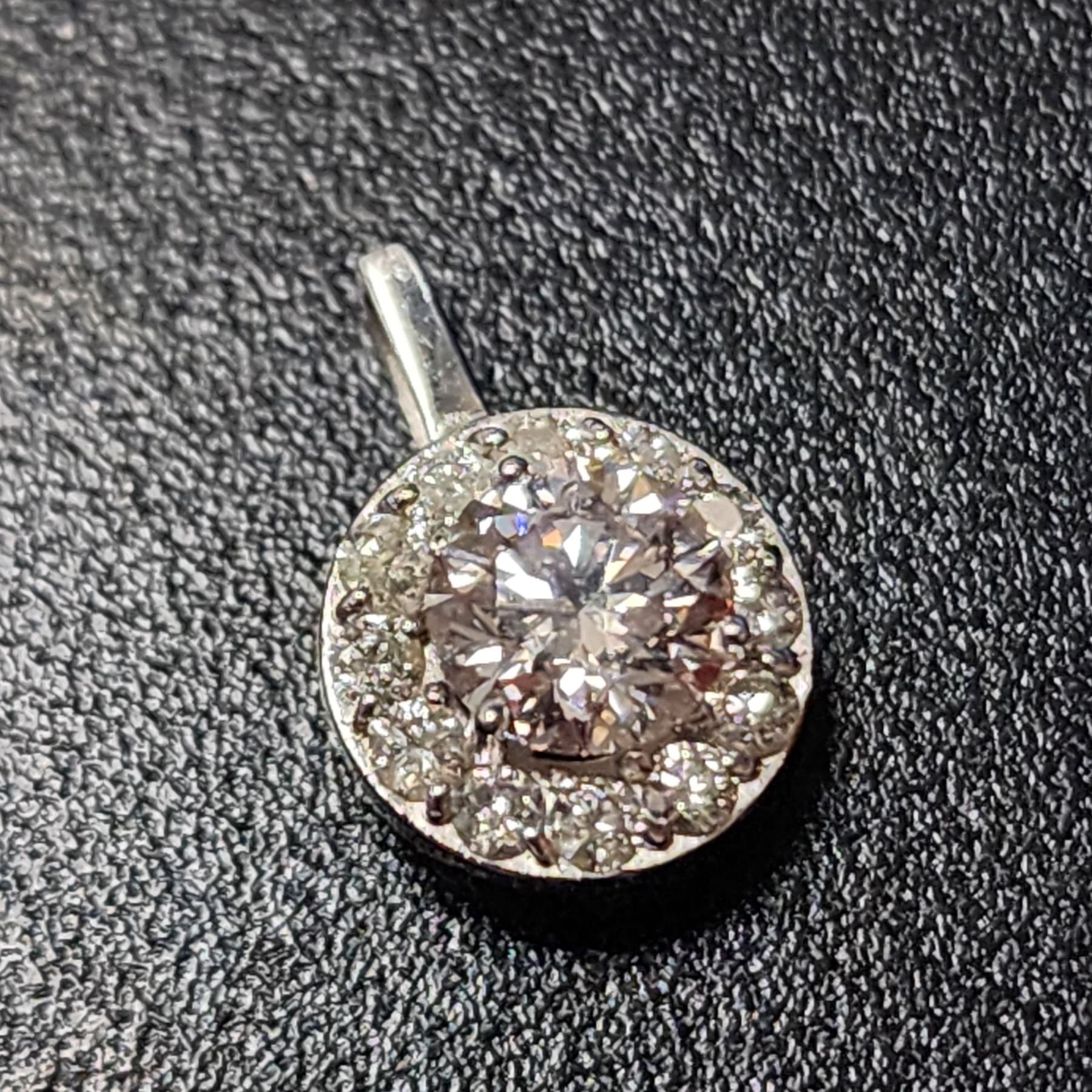 14K WHITE GOLD MOISSANITE(0.6CT) DIAMOND (0.16CT) PENDANT (~WEIGHT 0.67G)