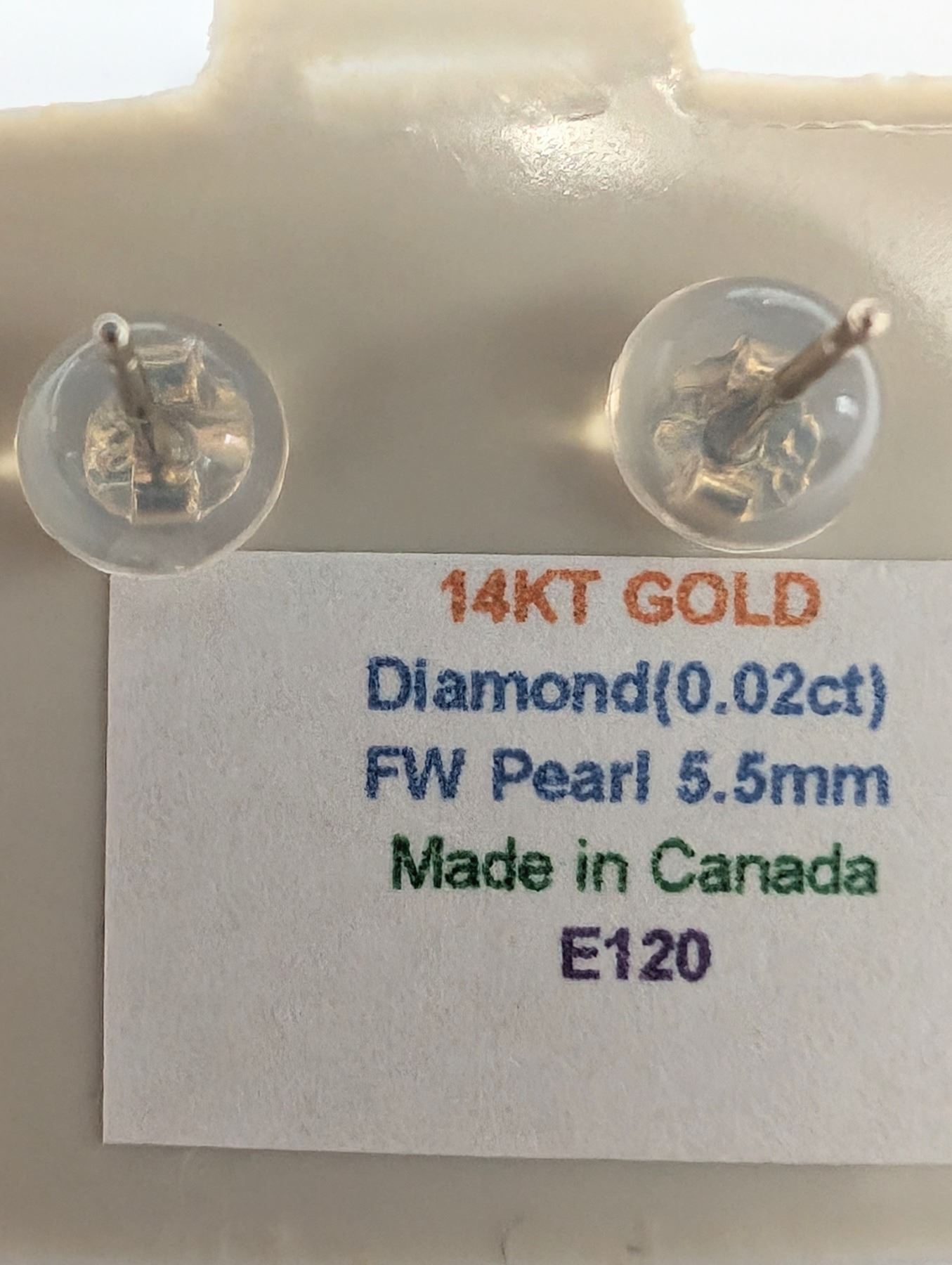 14K WHITE GOLD PEARL AND DIAMOND 0.02CT EARRINGS SUGGESTED RETAIL VALUE $240