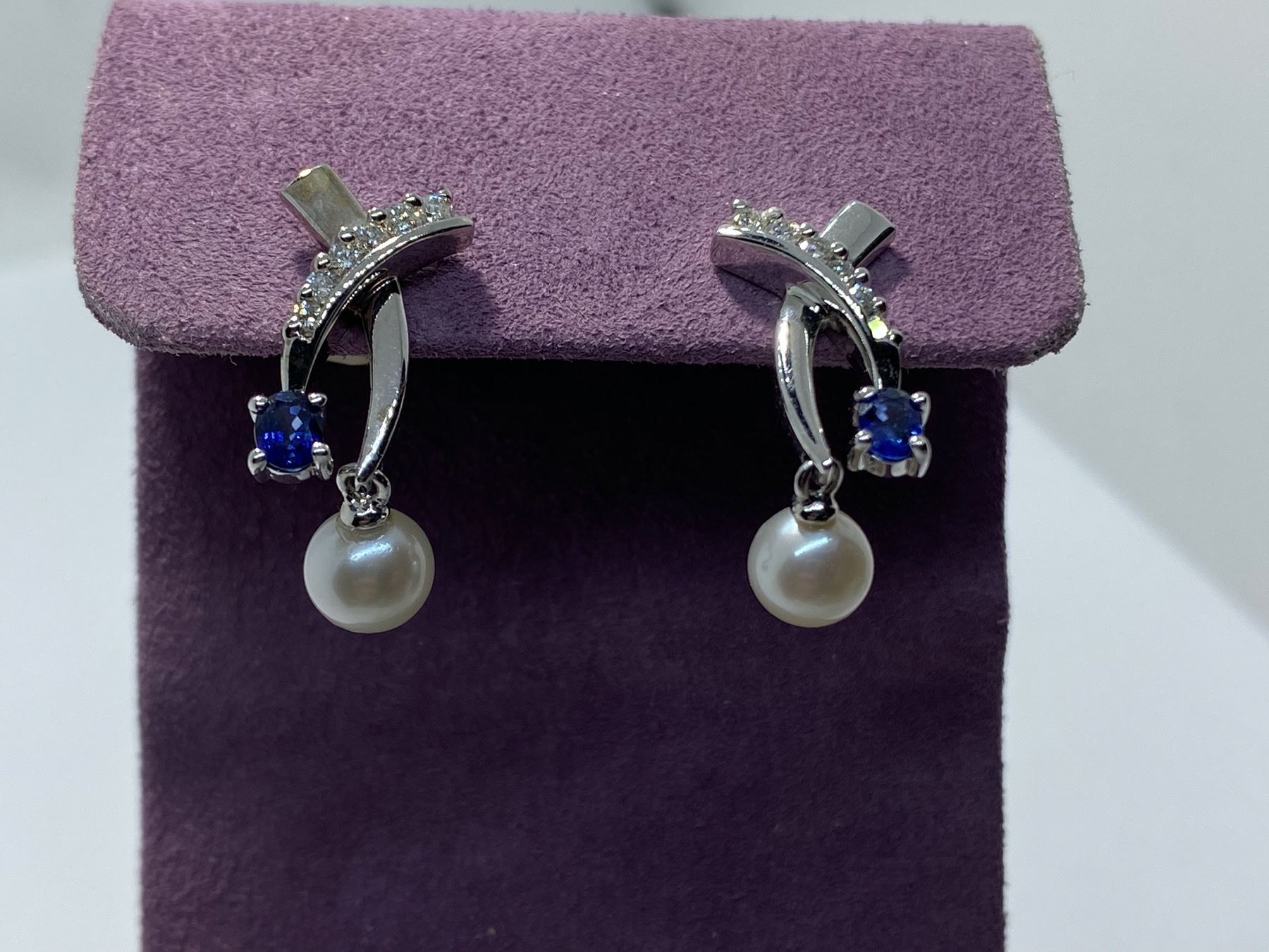 14K WHITE GOLD PEARL, SAPPHIRE DIAMOND EARRINGS RETAIL 954.00