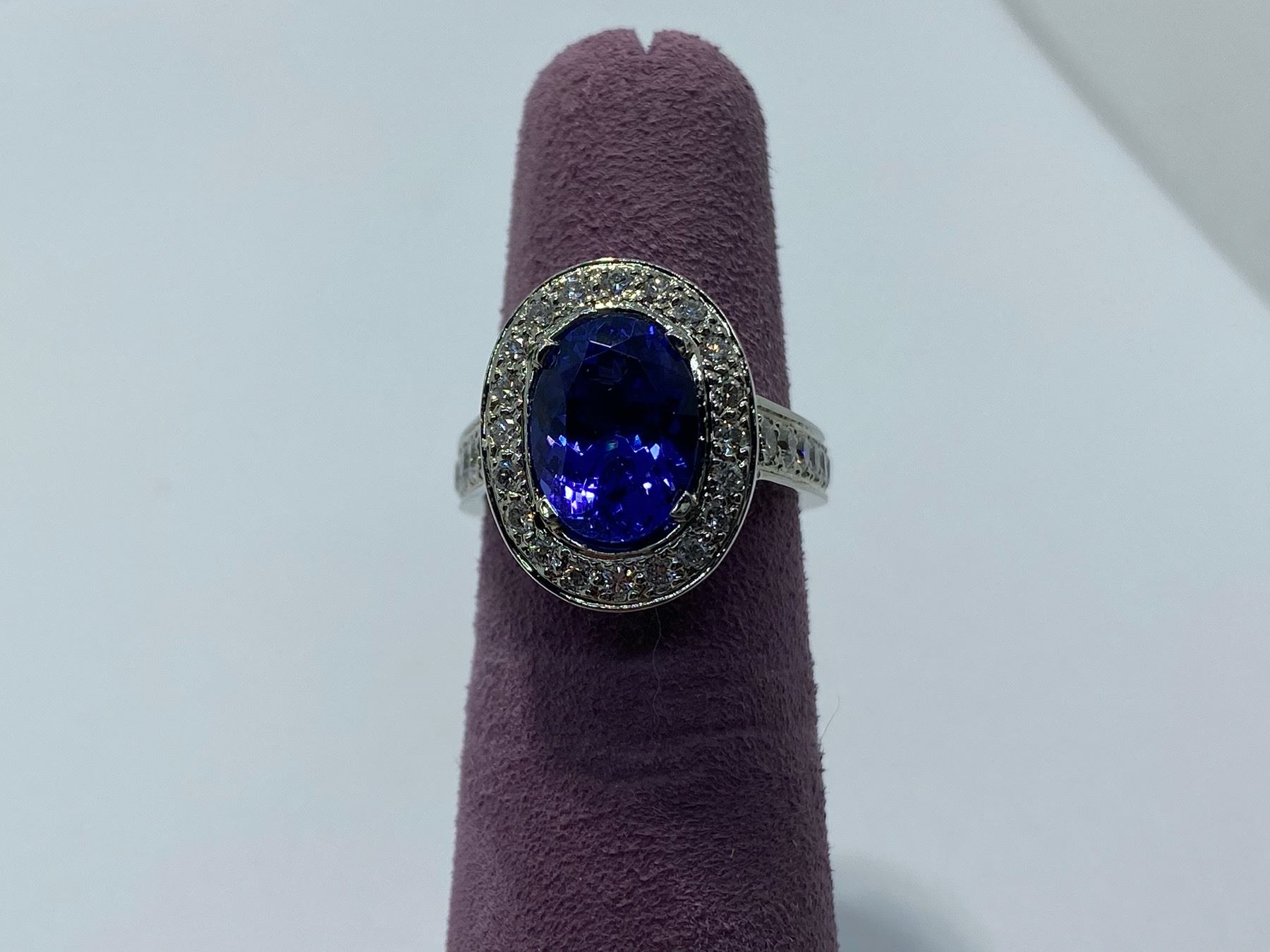 14K WHITE GOLD RING WITH BLUE STONE AND DIAMONDS RETAIL 7500.00