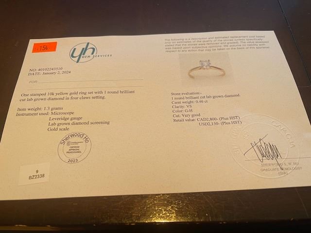 14K YELLOW GOLD 1.3G LAB DIAMOND 0.46CT RING APPRAISED INSURANCE VALUE $2800