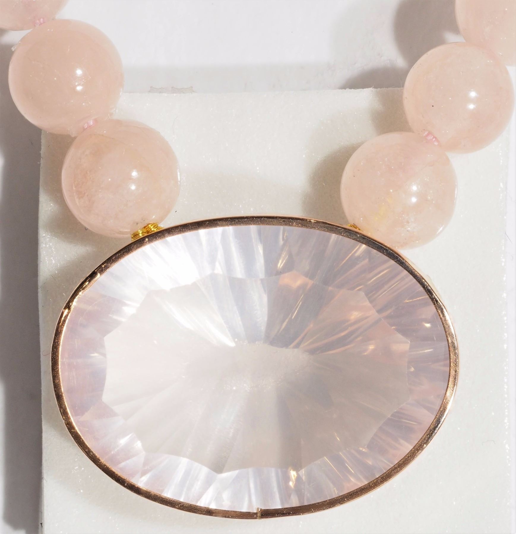 14K YELLOW GOLD CLASP ROSE QUARTZ NECKLACE WITH MORGANITE PENDANT. INSURANCE VALUE $2150